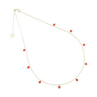 Girocollo realizzato in oro giallo 18 carati con sfere di corallo pendenti.