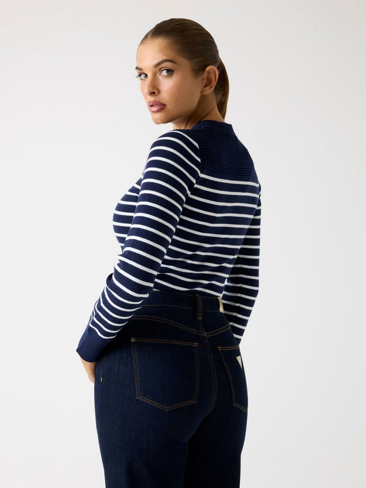 GUESS Abito Donna LS CN HELEN SWTR W5BR36 Z0422 S7Z6 BLUE AND CREAM STRIP