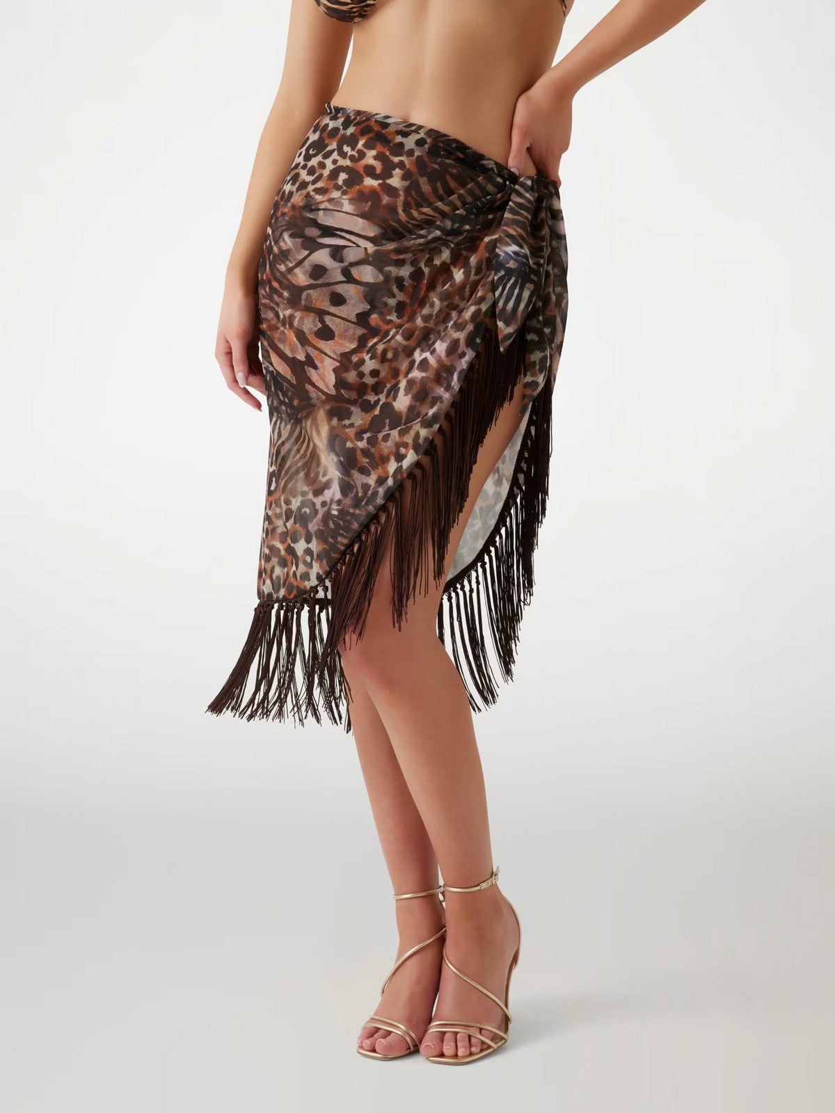 GUESS BEACHWEAR Pareo Donna E5GZ01 WH4T2 P1LI BUTTERFLY LEOPARD AO