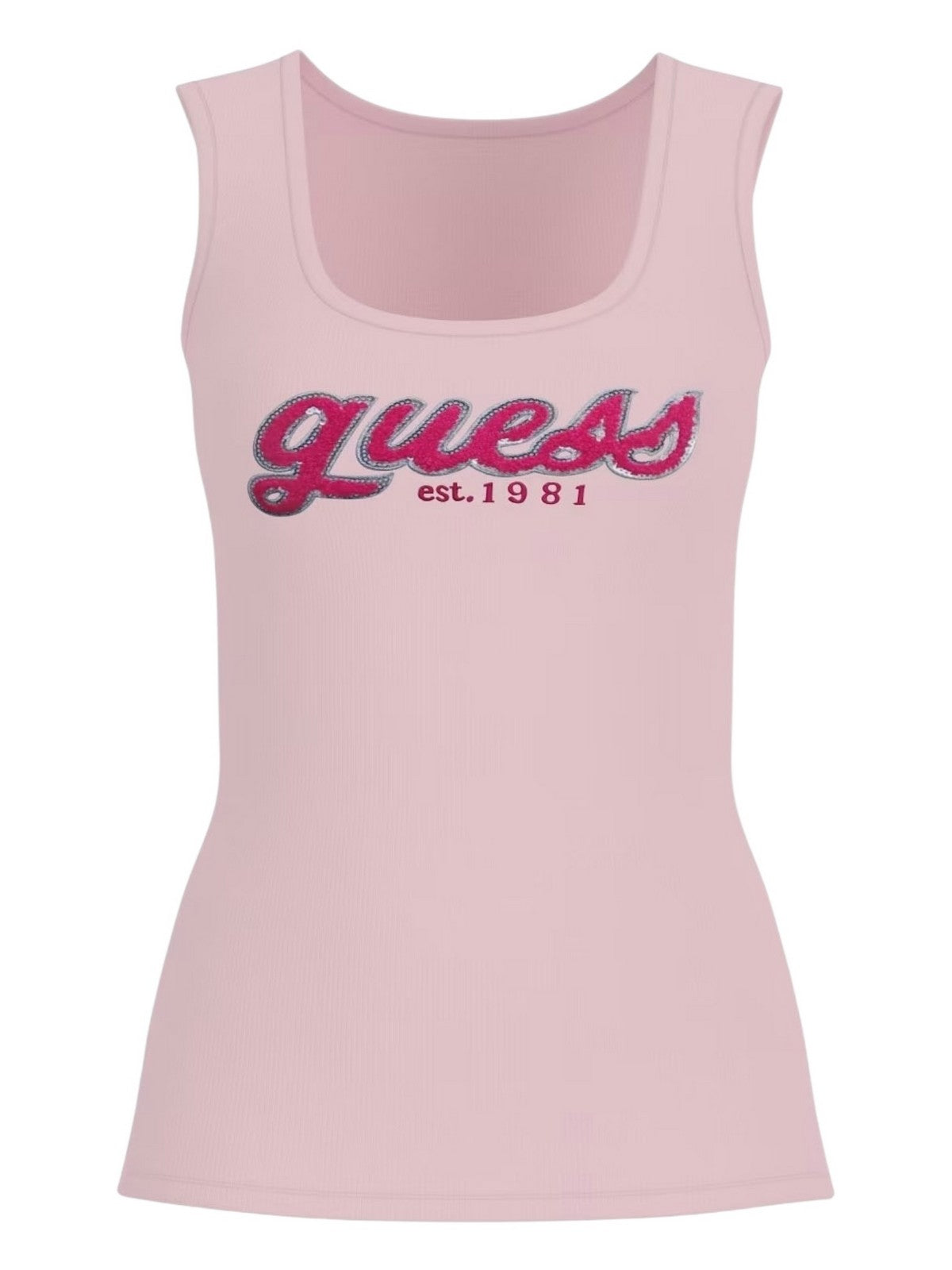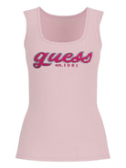 GUESS Body Donna CHENILLE LOGO TANK TOP RIB W5RP03 KA0H1 A60W Rosa