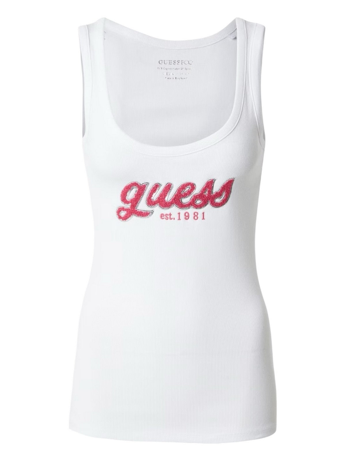 GUESS Body Donna CHENILLE LOGO TANK TOP RIB W5RP03 KA0H1 G011 Bianco