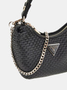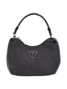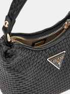 Borsa GUESS in simil pelle intrecciata. Triangolo logo in metallo frontale. Chiusura con cerniera lampo.