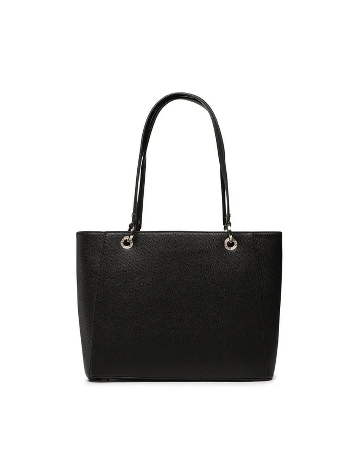 Borsa GUESS in simil pelle, lavorazione saffiano. Triangolo logo con dettaglio in metallo frontale.