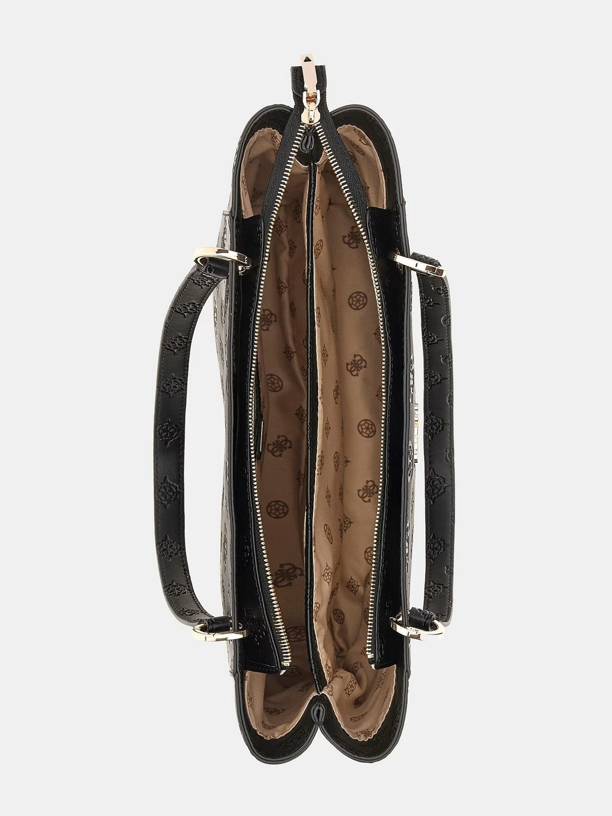 Borsa GUESS in similpelle con logo 4g e peony impresso all-over. Scritta logo frontale in metallo. Due manici e charm logato alla base del manico.