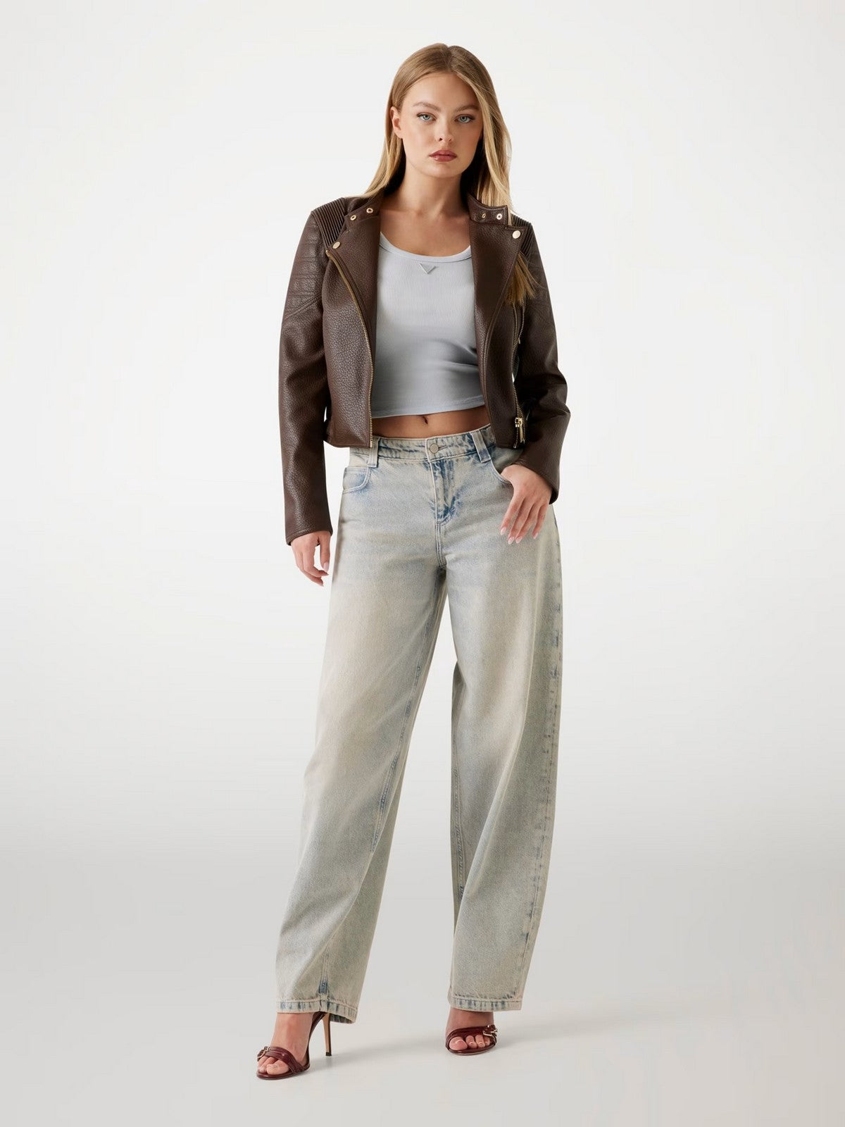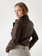 GUESS Giubbino Donna JEANNINE PU STITCHED JACKET W5YL19 WHDS0 FN09 REGAL BROWN MULTI