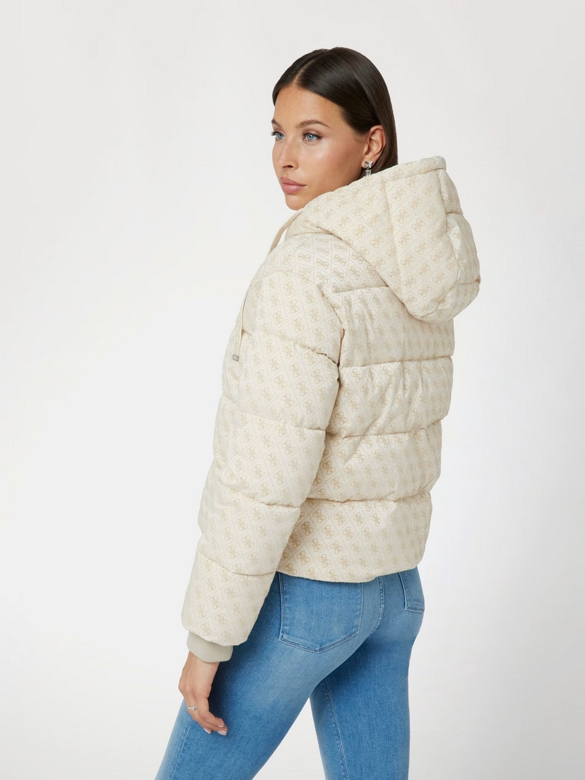 GUESS Piumino Donna DAISY PUFFER LOGO FLOCK W4BL36 WGJZ0 FN1E Bianco