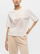 GUESS SPORT T-shirt Donna RHINESTONE BEAR BOXY V5RI09 I3Z14 G6K5 Bianco
