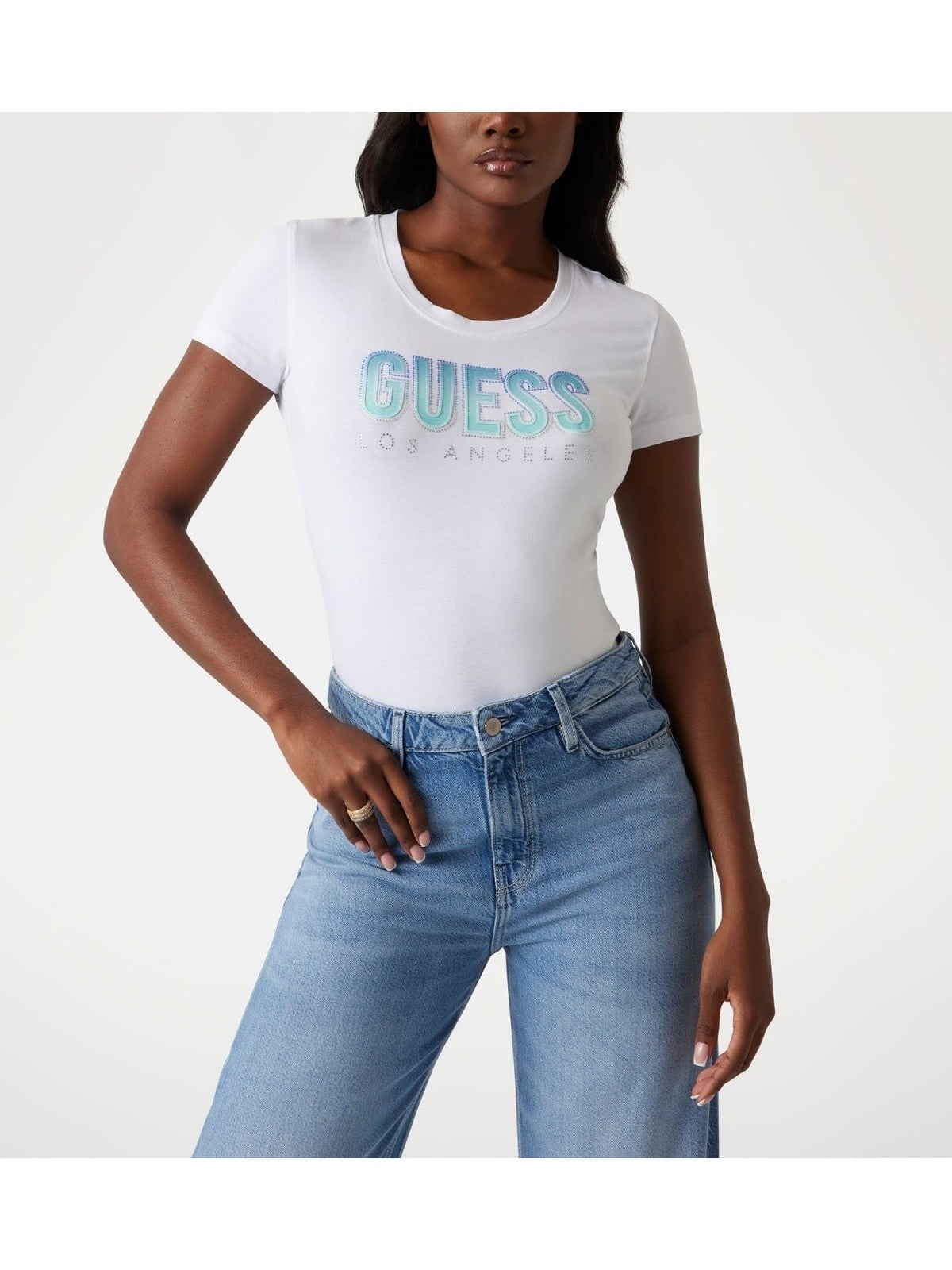 GUESS T-shirt Donna CN SS GLITTER DEGRADE LOGO TEE W5GI14 J1314 G011 PURE WHITE