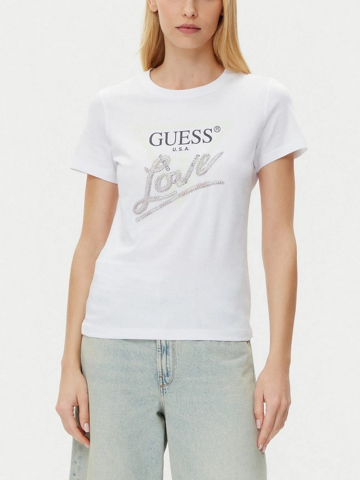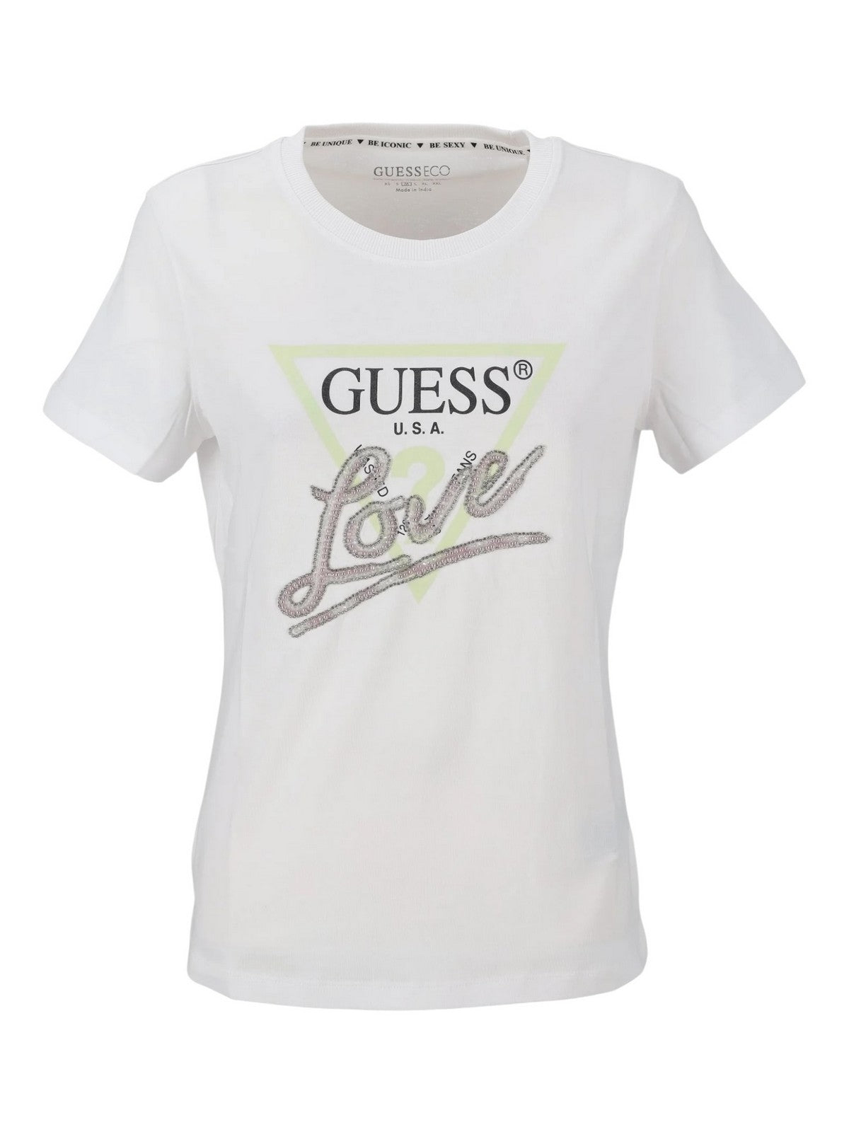 GUESS T-shirt Donna CN SS LOVE TRIANGLE TEE W5GI05 I3Z14 G011 Bianco