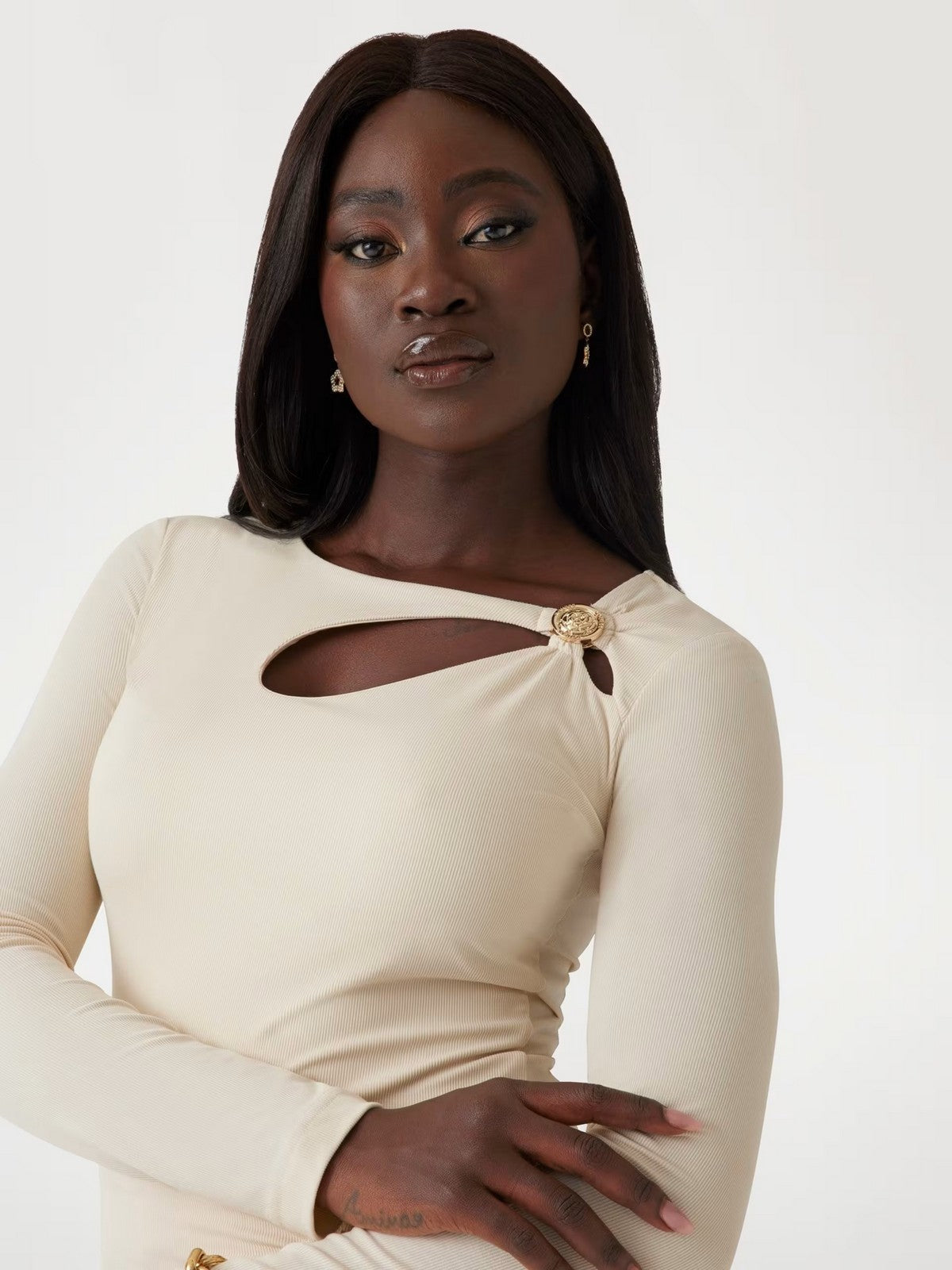 GUESS T-shirt Donna LS ZAMA CUT OUT NECK TOP W5RP12 KAQL2 G1M5 Bianco