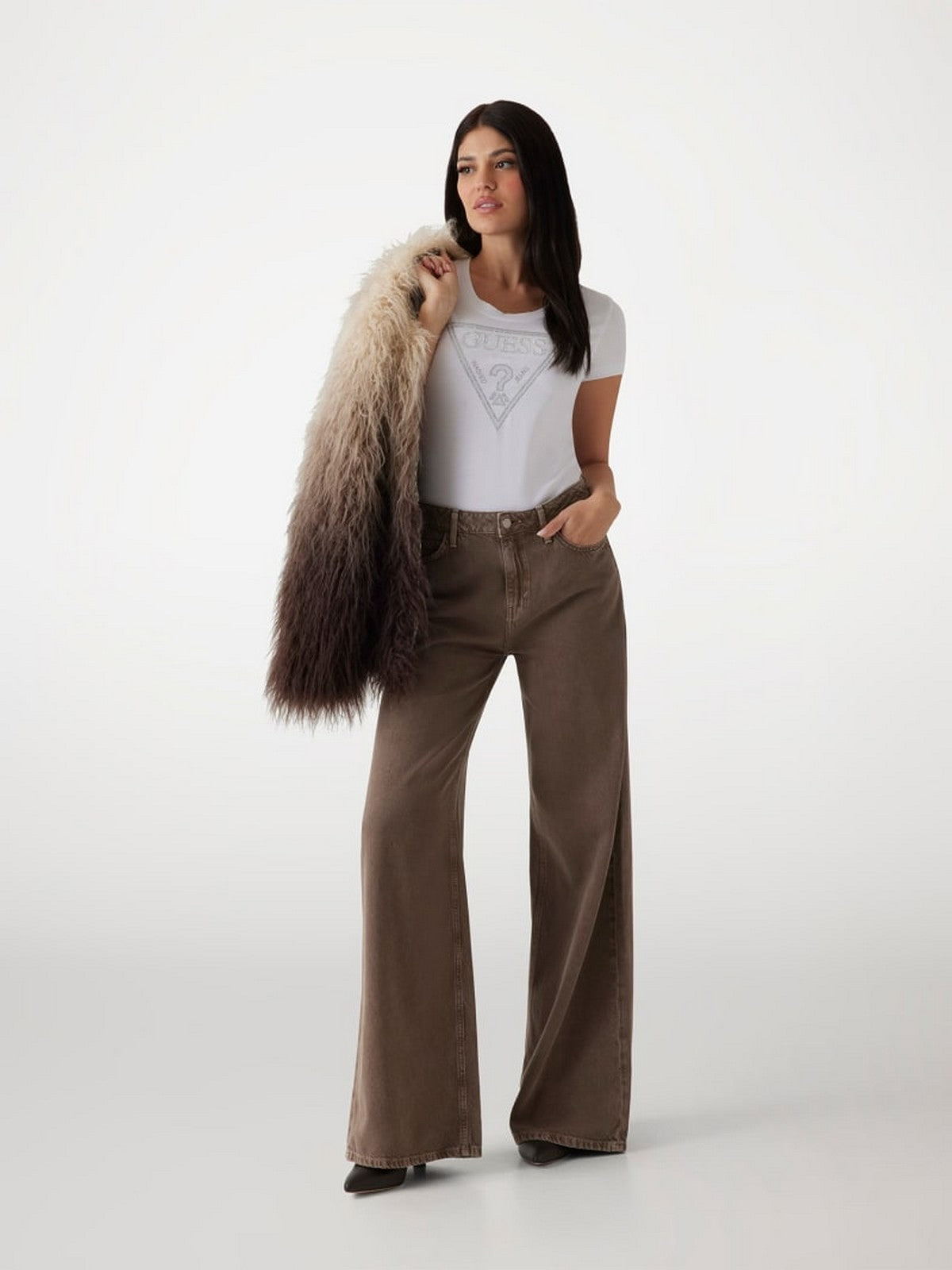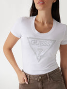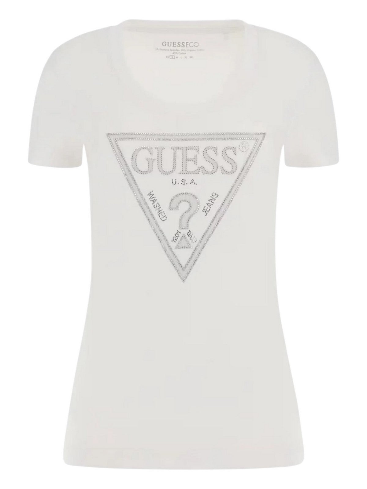 GUESS T-shirt Donna SS CN SHINY TRIANGLE TEE W5RI11 J1314 G011 Bianco