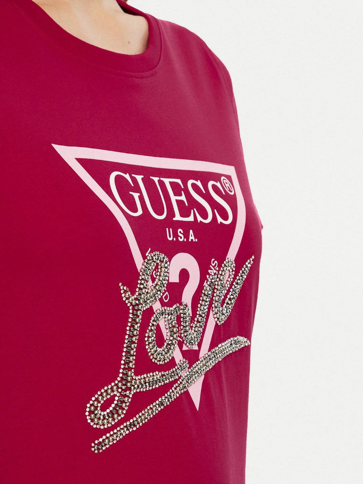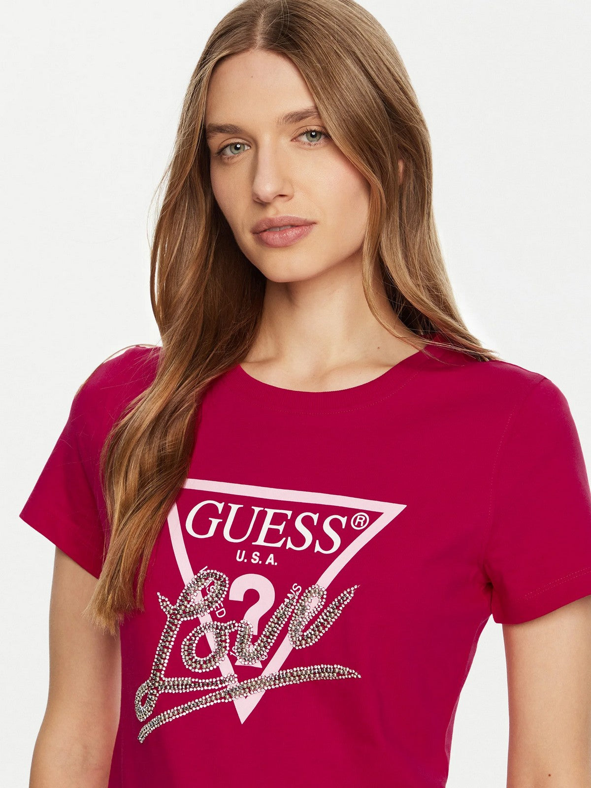 GUESS T-shirt Donna SS CN TRIANGLE LOVE TEE W5RI10 I3Z14 G574 Rosso