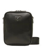 Tracolla GUESS in simil pelle idrorepellente, lavorazione saffiano. Triangolo logo in metallo frontale. Tasca esterna sul retro.