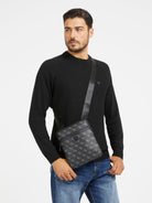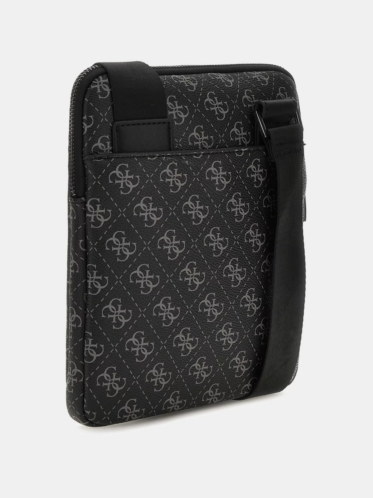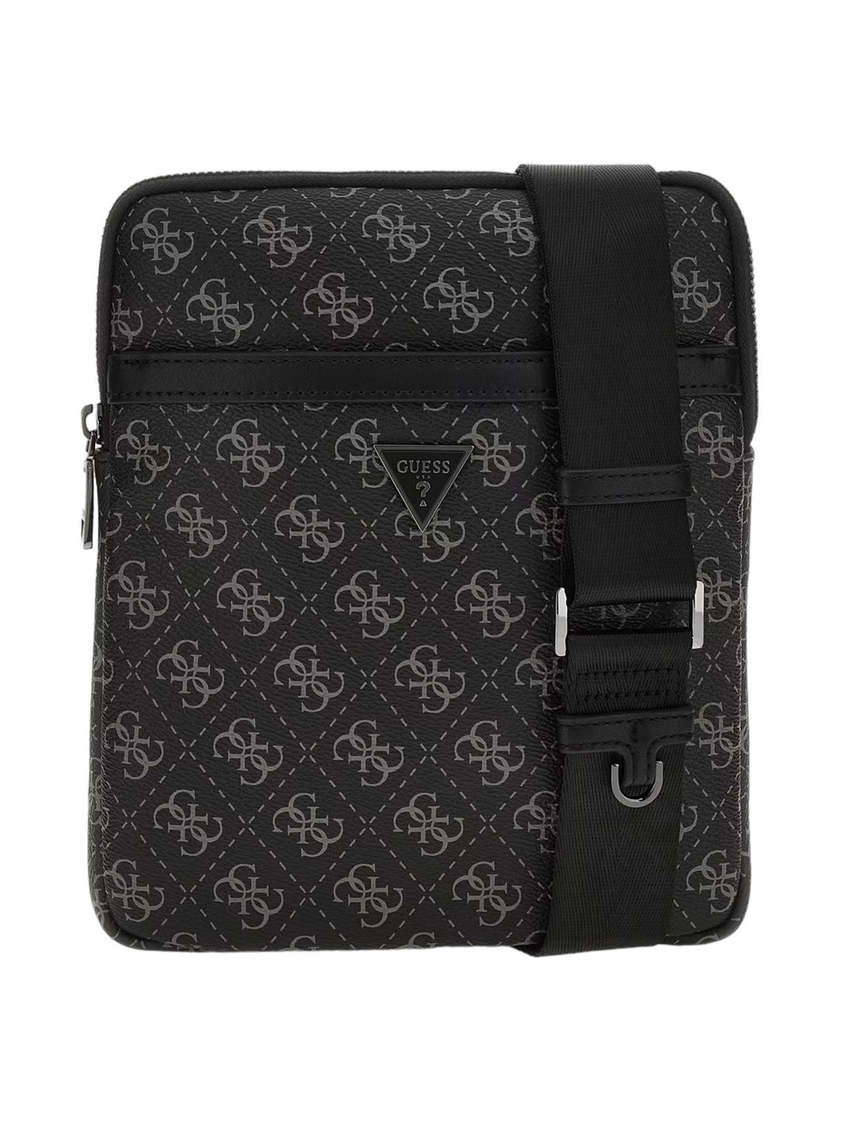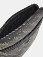 Tracolla uomo GUESS in similpelle. Logo 4g all-over e triangolo logo sul fronte. Chiusura con zip. tracolla regolabile.