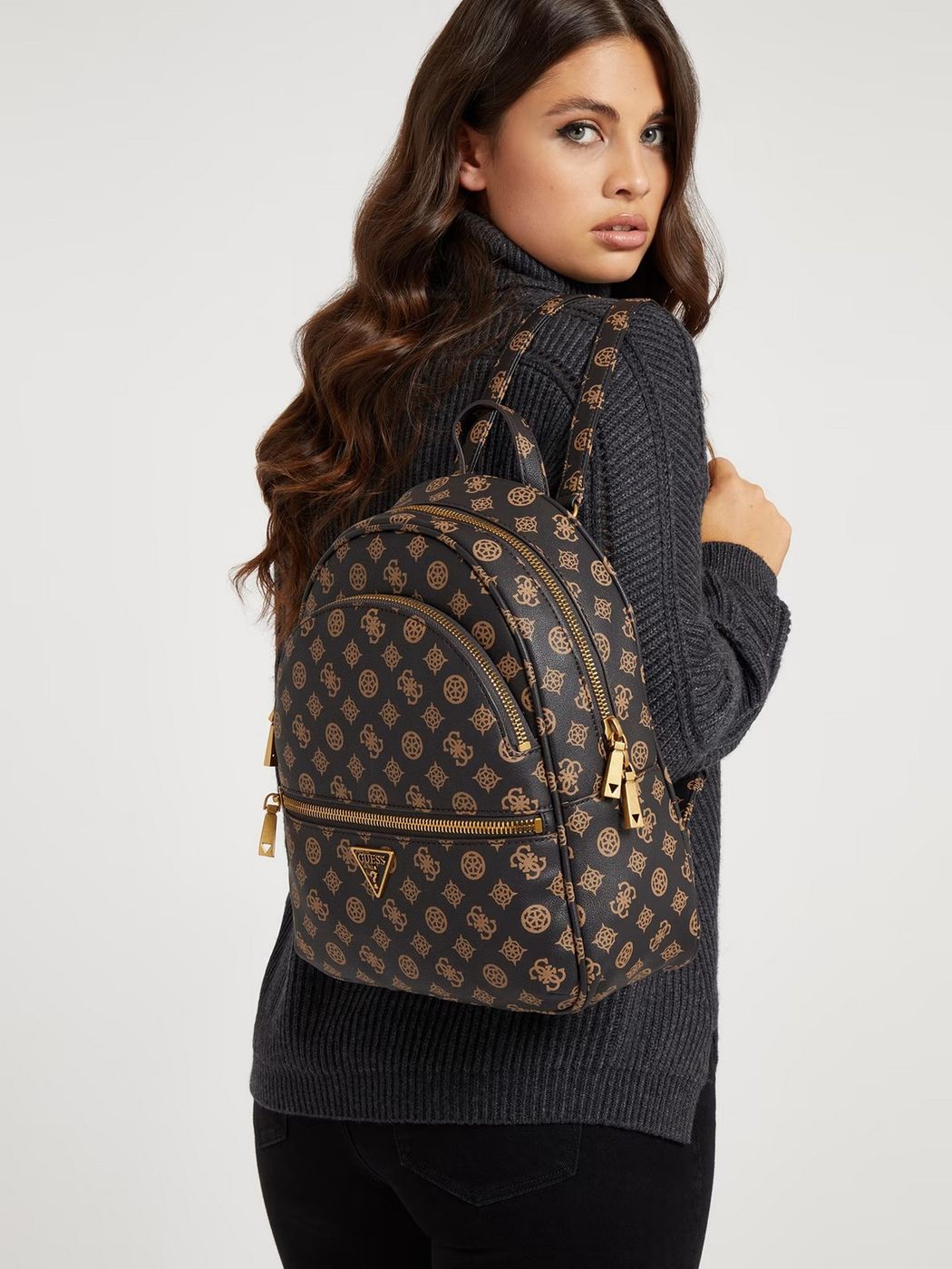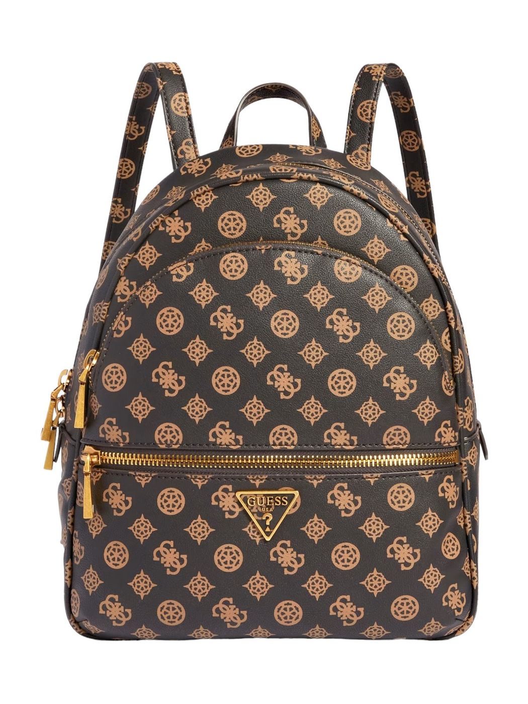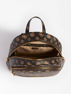 Zaino GUESS Manhattan in similpelle con stampa 4G e logo peony all over e triangolo logo frontale in metallo. Doppia tasca frontale con cerniera lampo. Scomparto principale con chiusura zip. Spallacci regolabili. Interno foderato.Misure 28x33,5x12 cm