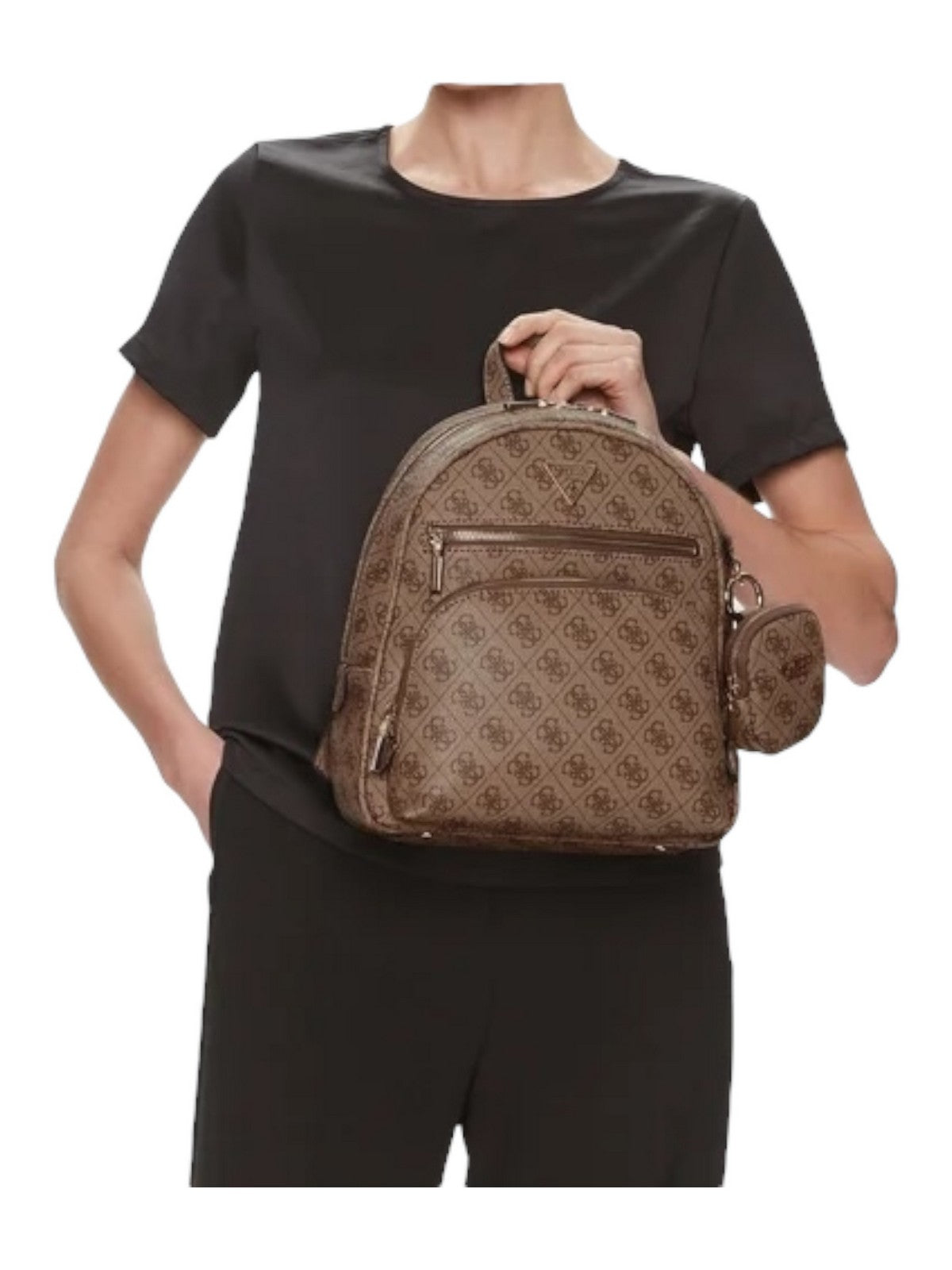 Zaino GUESS in simil pelle, motivo logo 4g all-over. Triangolo logo in metallo frontale.