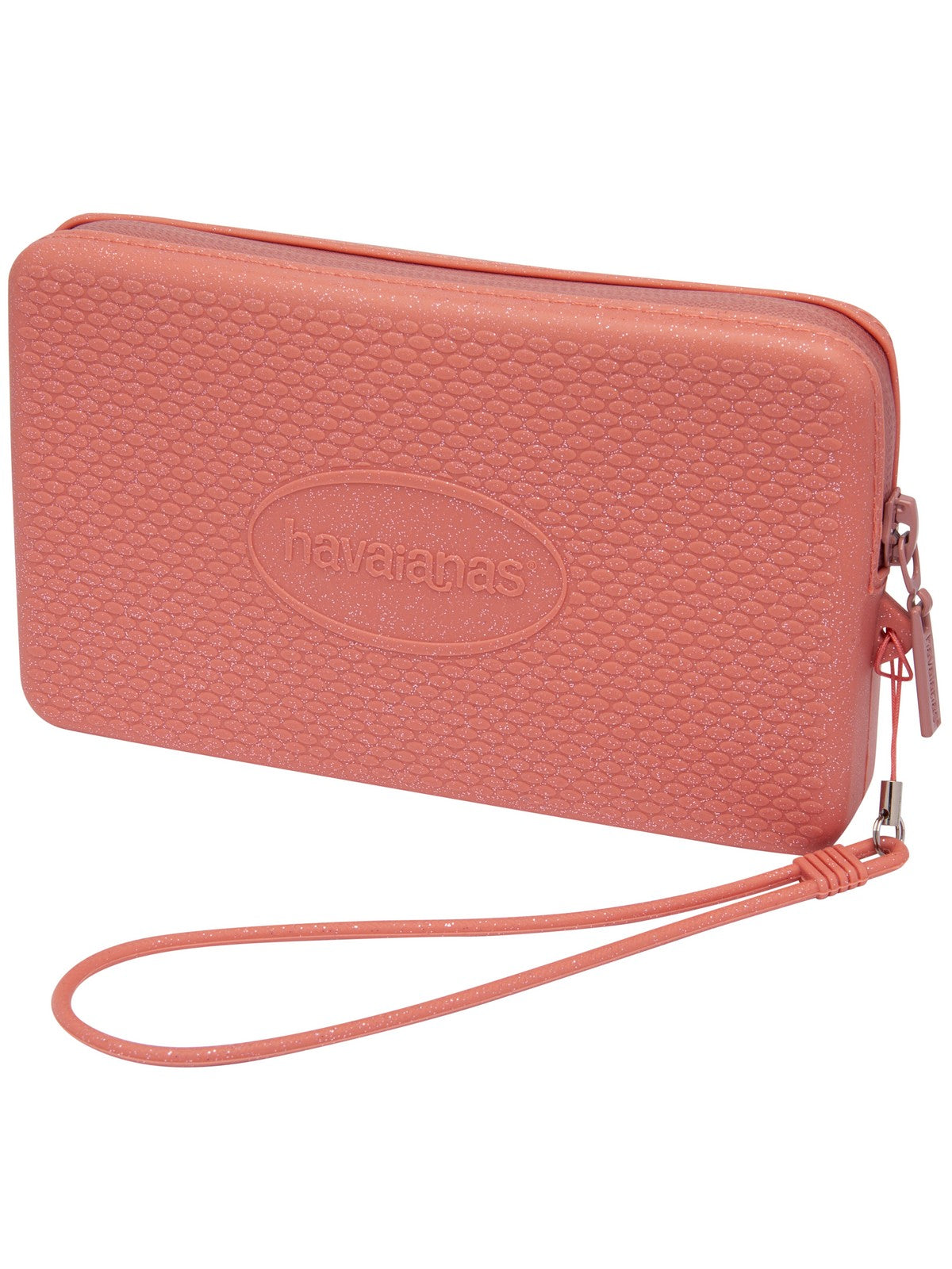 Mini pochette HAVAIANAS in silicone tinta unita glitterato con logo in metallo sul fronte. Chiusura con zip. Cinturino da polso.