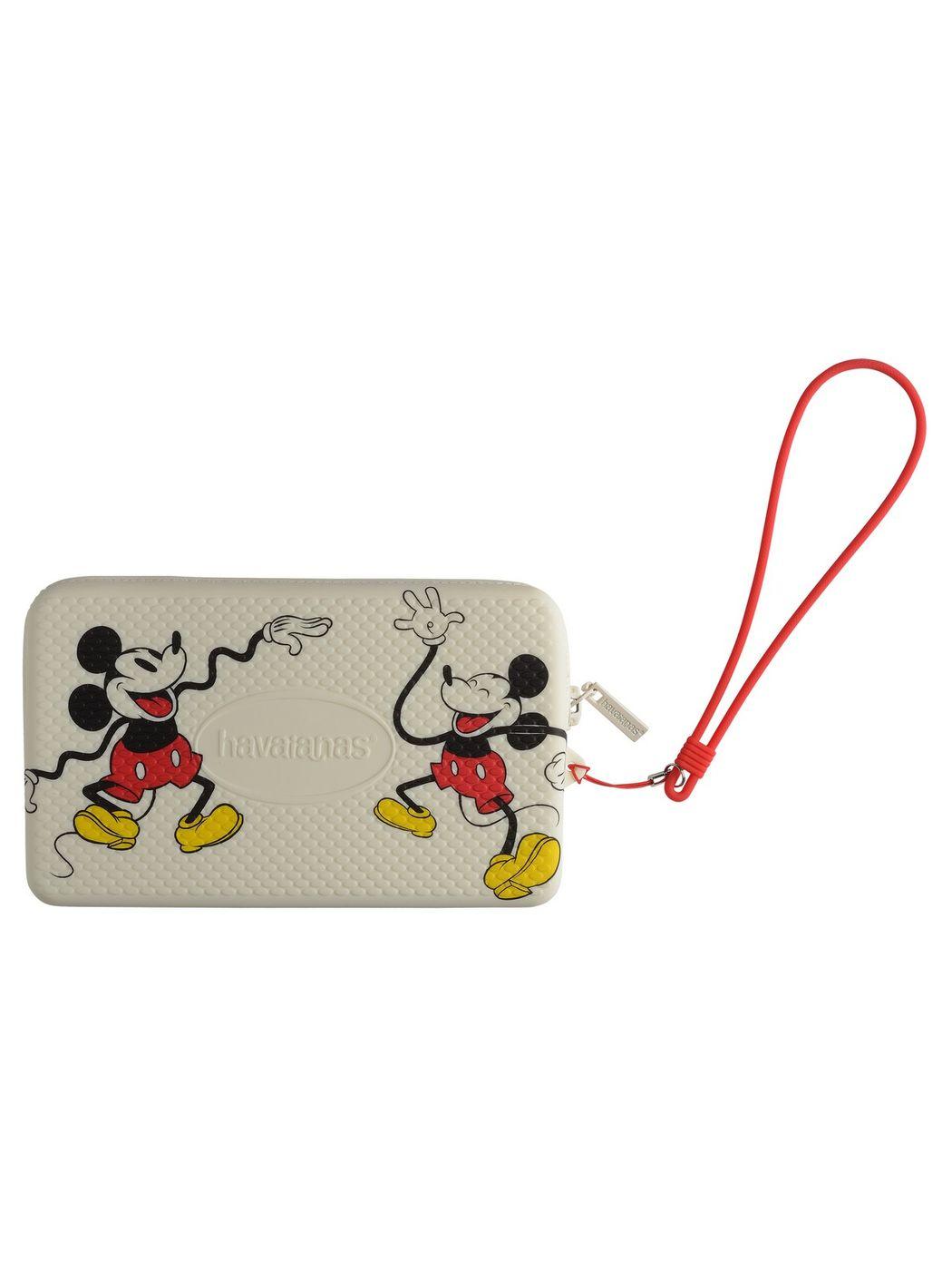 Mini pochette HAVAIANAS in silicone tinta unita con stampa topolino. Chiusura con zip. Cinturino da polso.