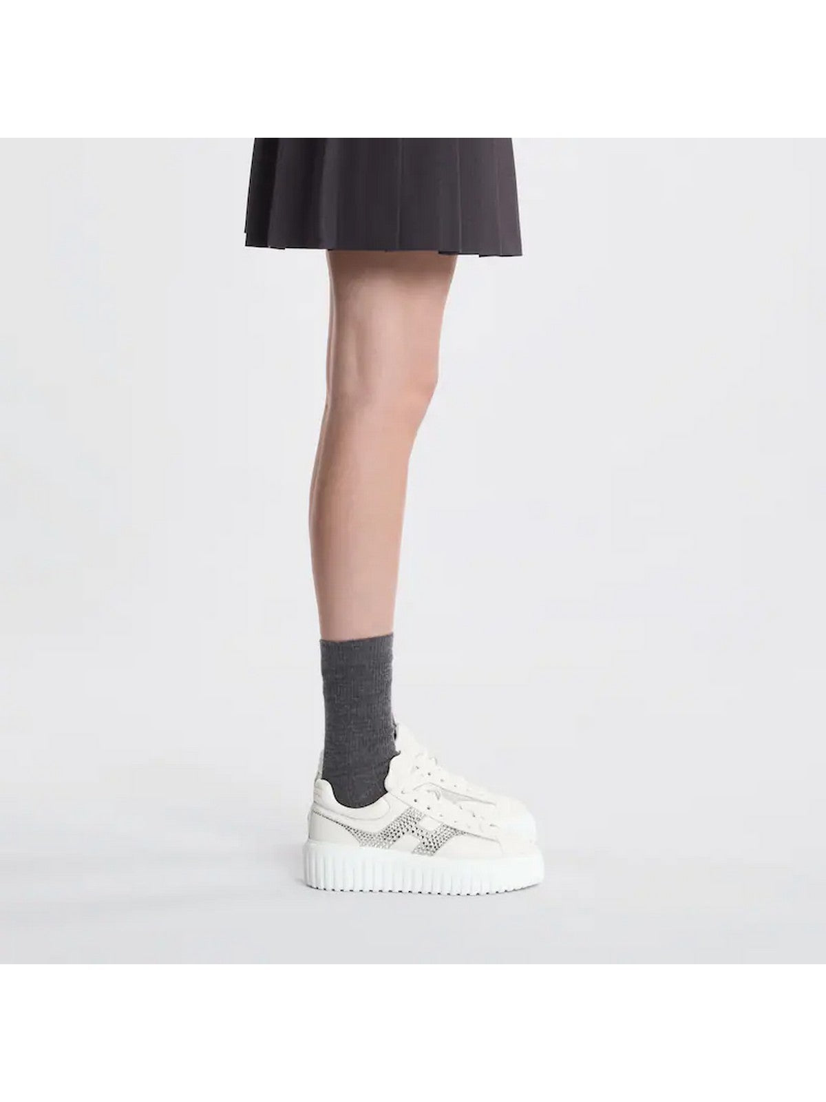 Sneakers H-Stripes Modello dalle linee sportive e versatili, sono caratterizzate da una suola extralight con righe verticali. La tomaia, dal design compatto e bilanciato, si distingue per un'H in pelle scamosciata e strass che si estende su tutto il lato. Il bordo superiore, con cuciture sul talloncino, ha una morbida imbottitura. Questa versione è realizzata in nappa, con una soletta in memory foam che assicura ammortizzazione.