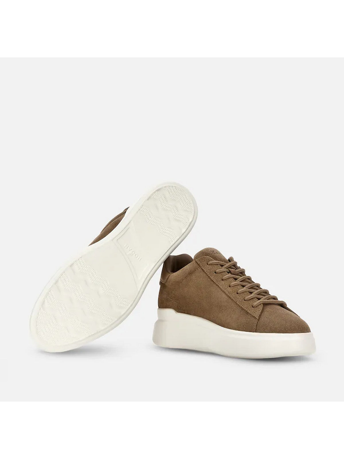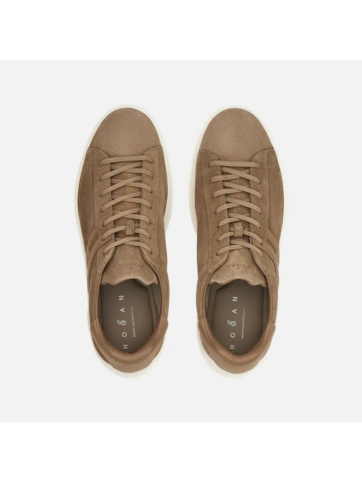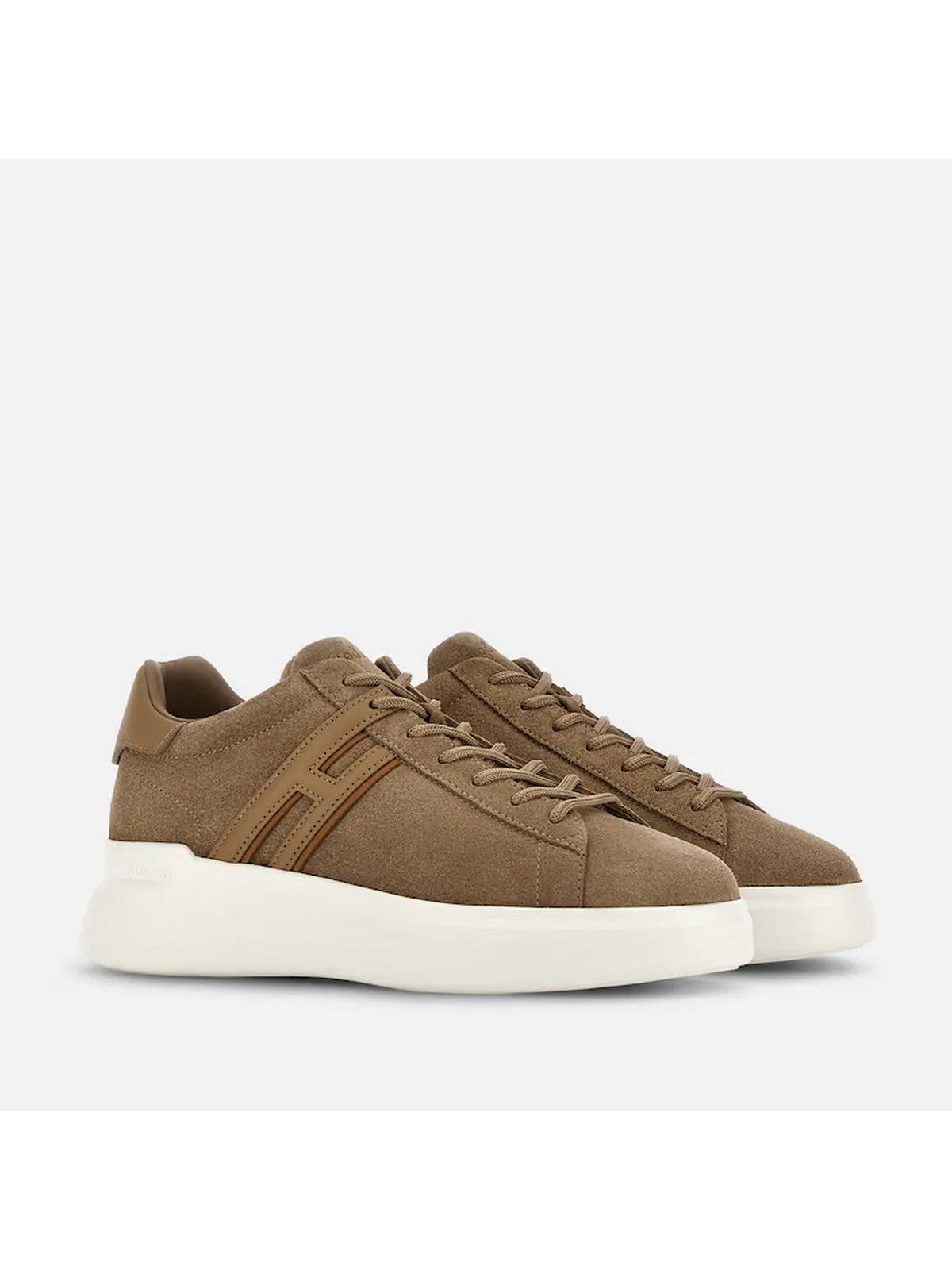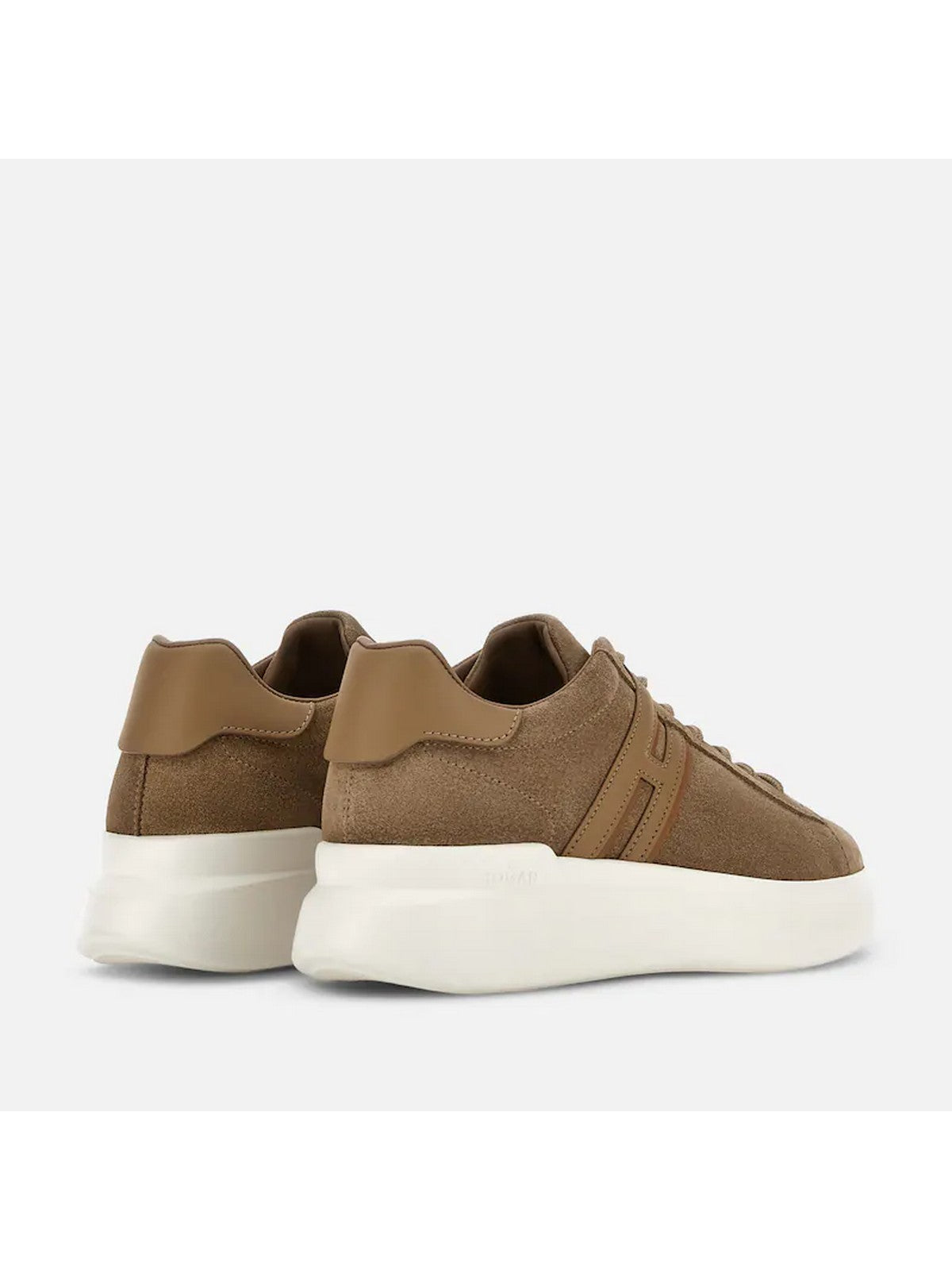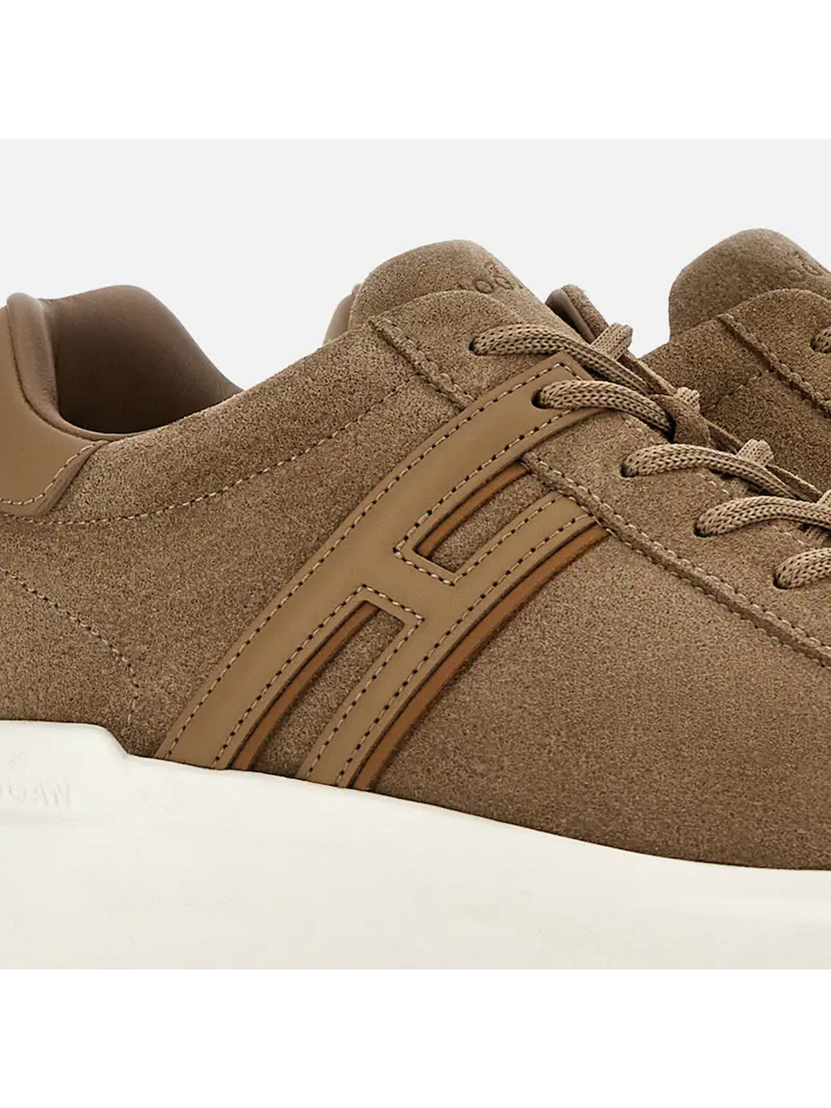 Sneakers H580 HOGAN tomaia in pelle scamosciata, dalle linee morbide ed essenziali, è lo sfondo di un'H allungata che termina in un passa laccio.
