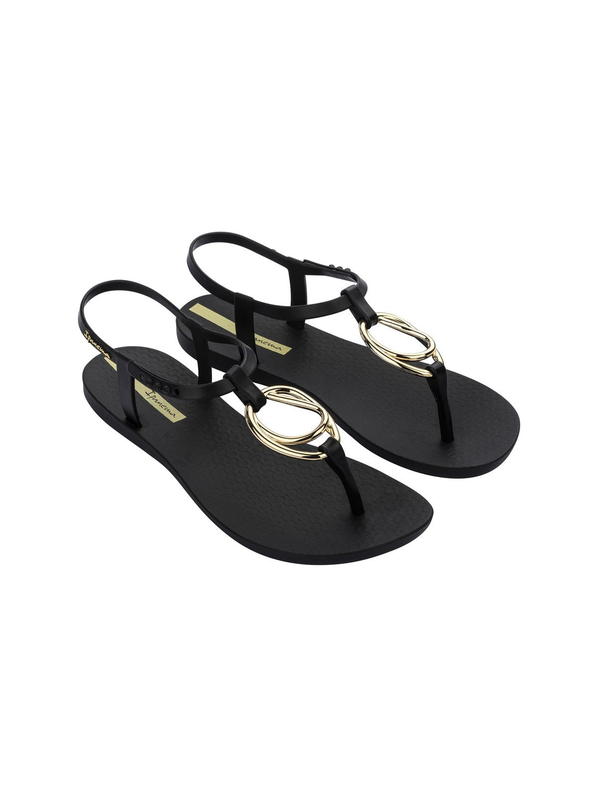 Sandalo Infradito IPANEMA realizzato con Flexpand, materiale riciclabile 100% e Vegan. Dotato di un'applicazione metallizzata. Laccetto regolabile.
