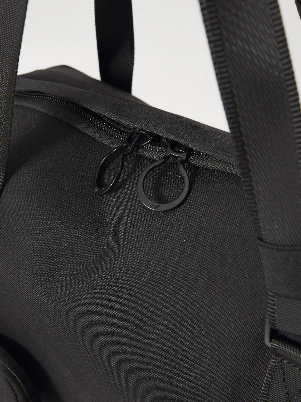 ? Tasca interna con zip in shell fabric, rimovibile e utilizzabile come pochette. ? Moschettone triangolare con piccola pouch multiuso.