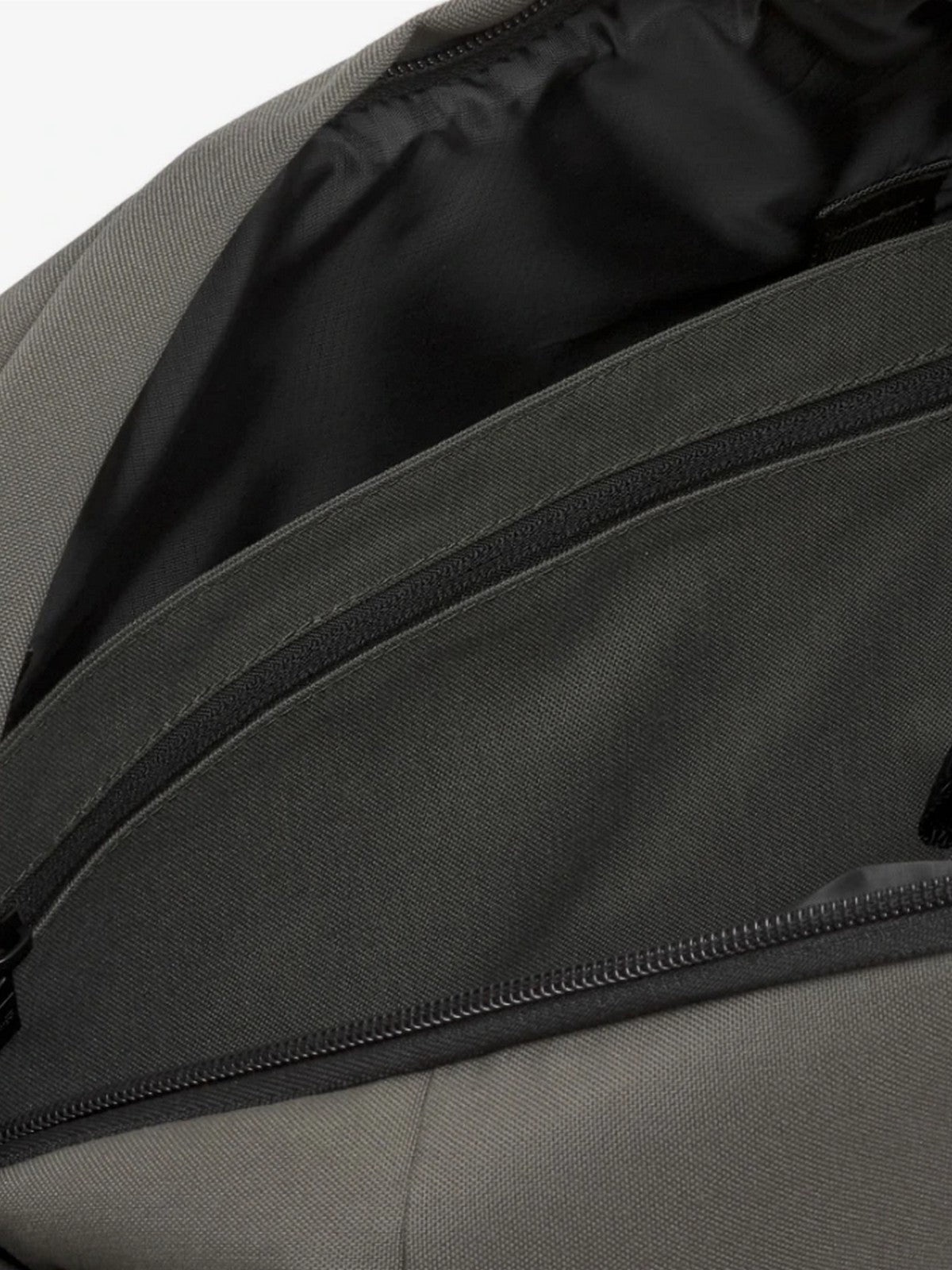 ? Tasca interna con zip in shell fabric, rimovibile e utilizzabile come pochette. ? Moschettone triangolare con piccola pouch multiuso.