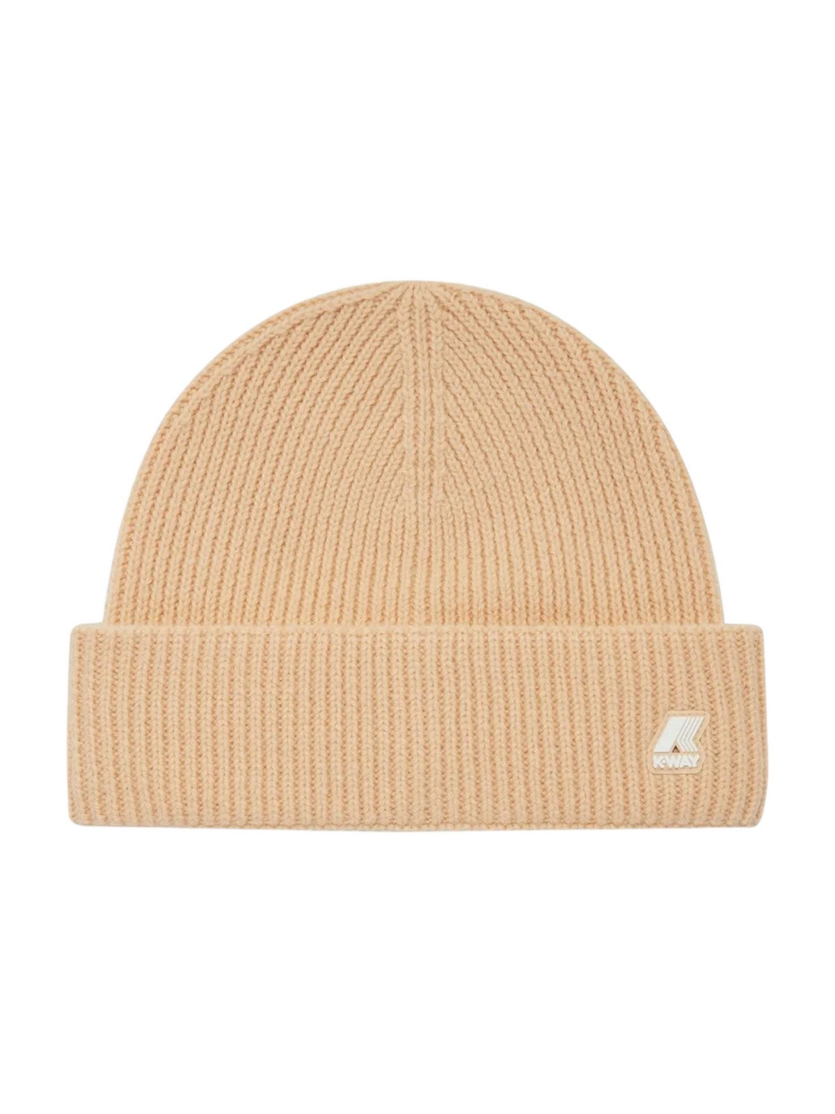 Cappello K.WAY con risvolto realizzato in lana lavorato a costa inglese con logo K-Way applicato sul lato.