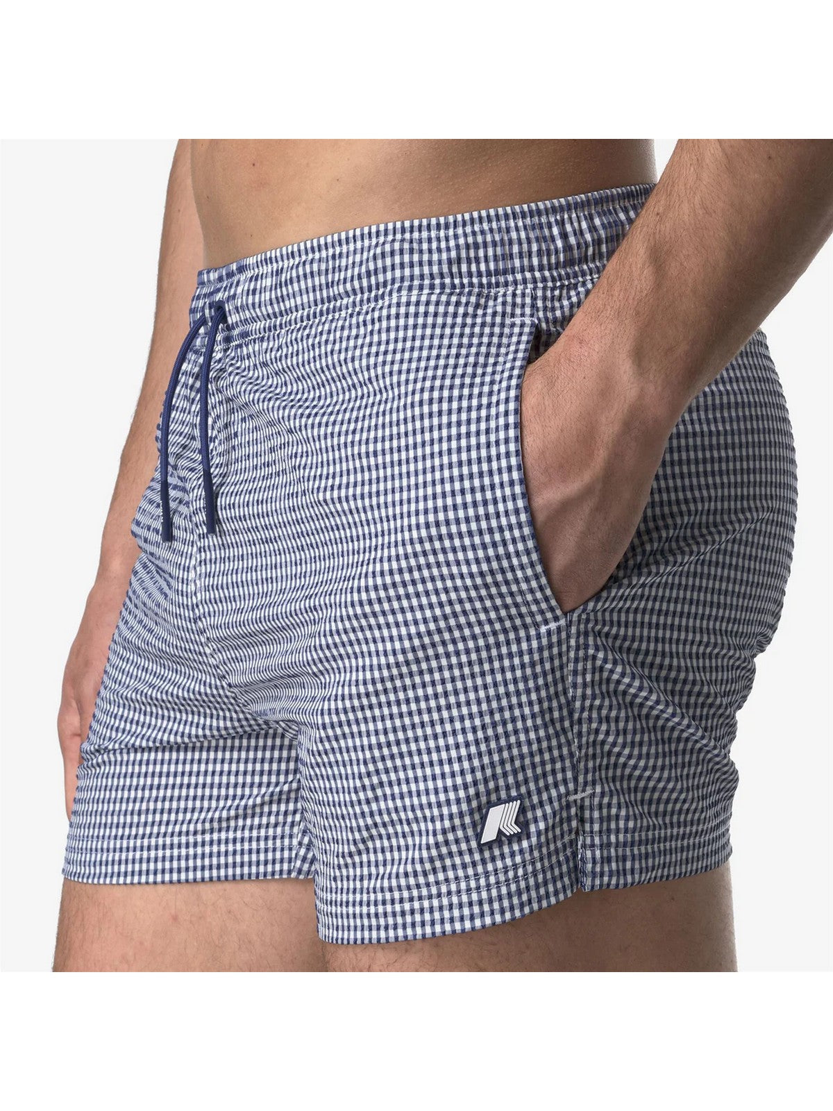 Costume K-WAY Hazel modello boxer corto dal design essenziale e versatile. Realizzato in tessuto seersucker con motivo a quadretti ad asciugatura rapida.