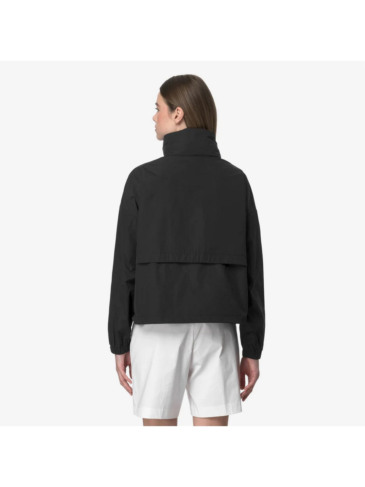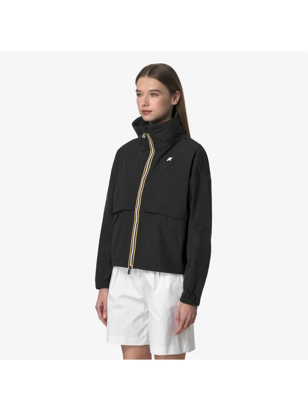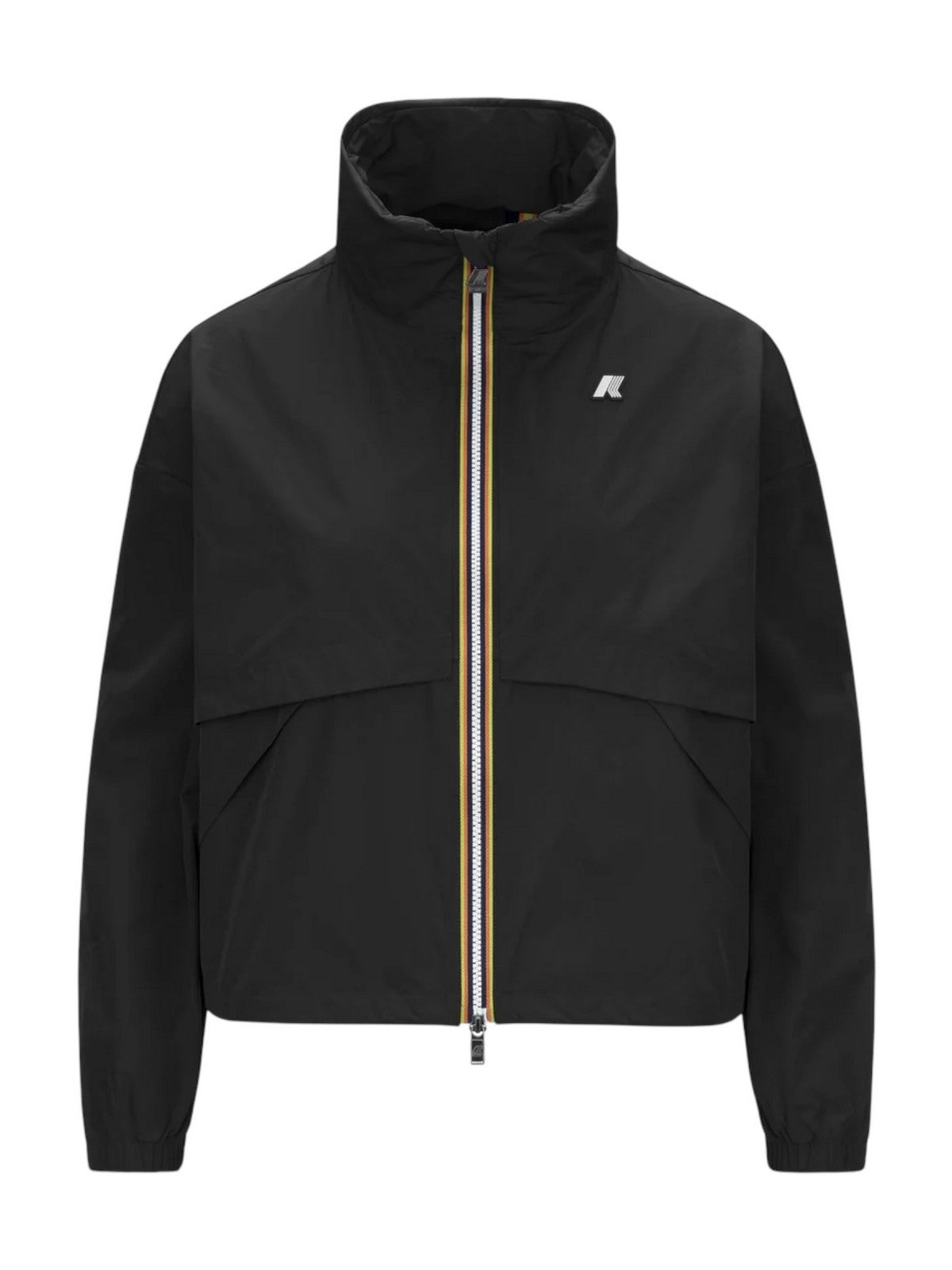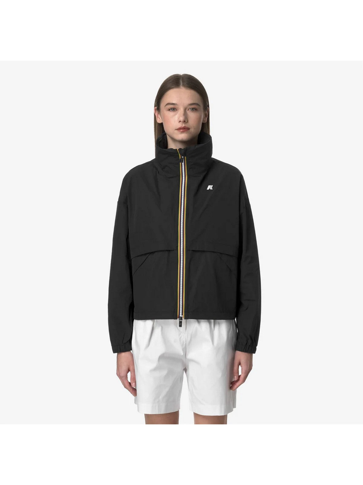 Giubbino donna K-WAY Aubette tessuto dalla finitura liscia e gommata e al taglio crop con dettagli voluminosi come maxi tasche e maxi flap sul fronte. La giacca presenta chiusura con zip nei colori K-Way, collo alto, polsi elastici e vita regolabile con coulisse.
