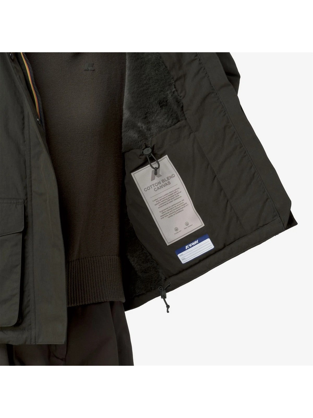 Parka K-WAY realizzato in tessuto misto cotone con un'imbottitura leggera in Primaloft® e un rivestimento interno parziale in faux fur. La giacca è dotata di cappuccio avvolgente e tasche frontali capienti.
