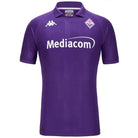 Maglia gioco KOMBAT PRO 2025 ACF FIORENTINA da uomo in tessuto elasticizzato riciclato e con tecnologia HYDRO-WAY PROTECTION, manica corta, colletto a polo e inserto sul fondo maniche in costina lavorata, grafica embossata sul fronte, sul retro e sulle maniche. Logo Omini sul petto in stampa HD e logo Omini sulle maniche realizzati in transfer applicati a caldo, 3D Team logo patch in silicone in transfer applicato a caldo e lettering retro collo e loghi interno collo realizzati in transfer. Vestibilità SKIN FIT. Salbini articoli tecnici per lo sport è rivenditore ufficiale Kappa .