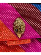 Borsa KURT GEIGER realizzata in tessuto scamosciato multicolore con strass applicato all-over. La testa d'aquila in ottone anticato è impreziosita da cristalli opachi in ottone e occhi in cristallo nero sulla patta frontale.