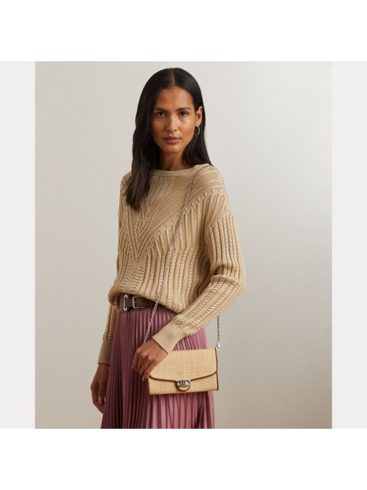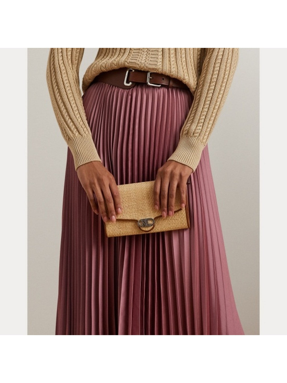 Borsa Adair Lauren Ralph Lauren realizzata con una combinazione di rafia intrecciata e morbida pelle pieno fiore, caratterizzata dalla sua finitura naturalmente liscia