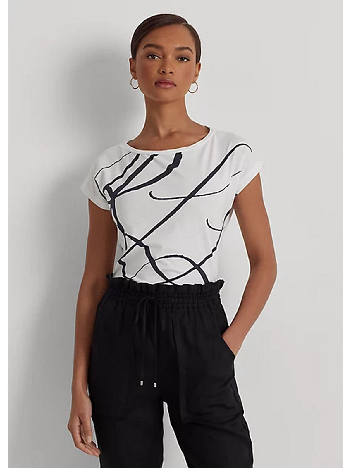 T-shirt RALPH LAUREN realizzata in morbido misto cotone con Scritta "Polo RL" oversize stampata al centro sul davanti a contrasto colore. Scollo a barchetta.