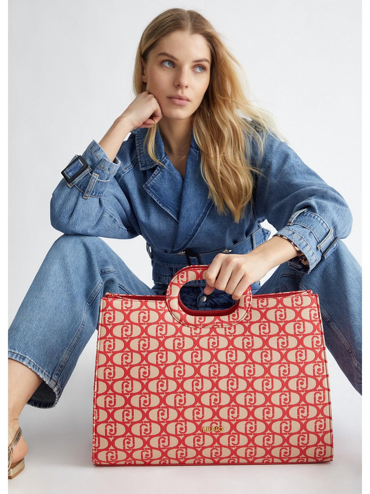 Shopping bag LIU JO in tessuto con dettagli in similpelle. Logo jacquard all over. Comodi manici. Tracolla logata rimovibile in gros grain. Chiusura con zip. Tasca interna zippata.