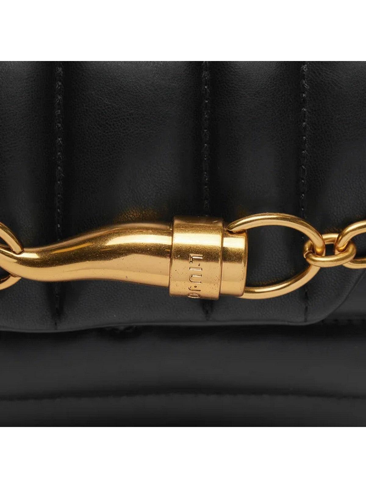 Borsa LIU JO realizzata in nappa sintetica motivo matelassé. Dotata di charm frontale con corno in metallo. Chiusura con patta e bottone automatico. Tracolla in similpelle removibile e manico da spalla a catena.