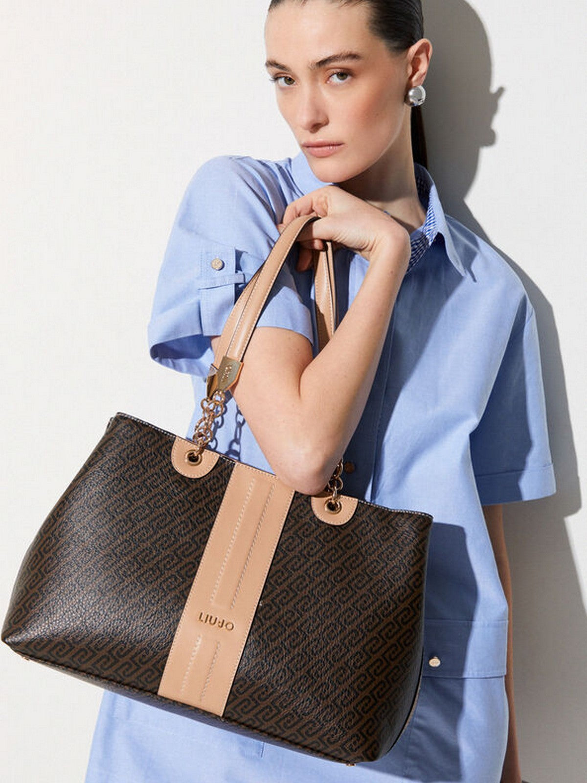 Borsa tote media LIU JO in similpelle, Logo monogram stampato