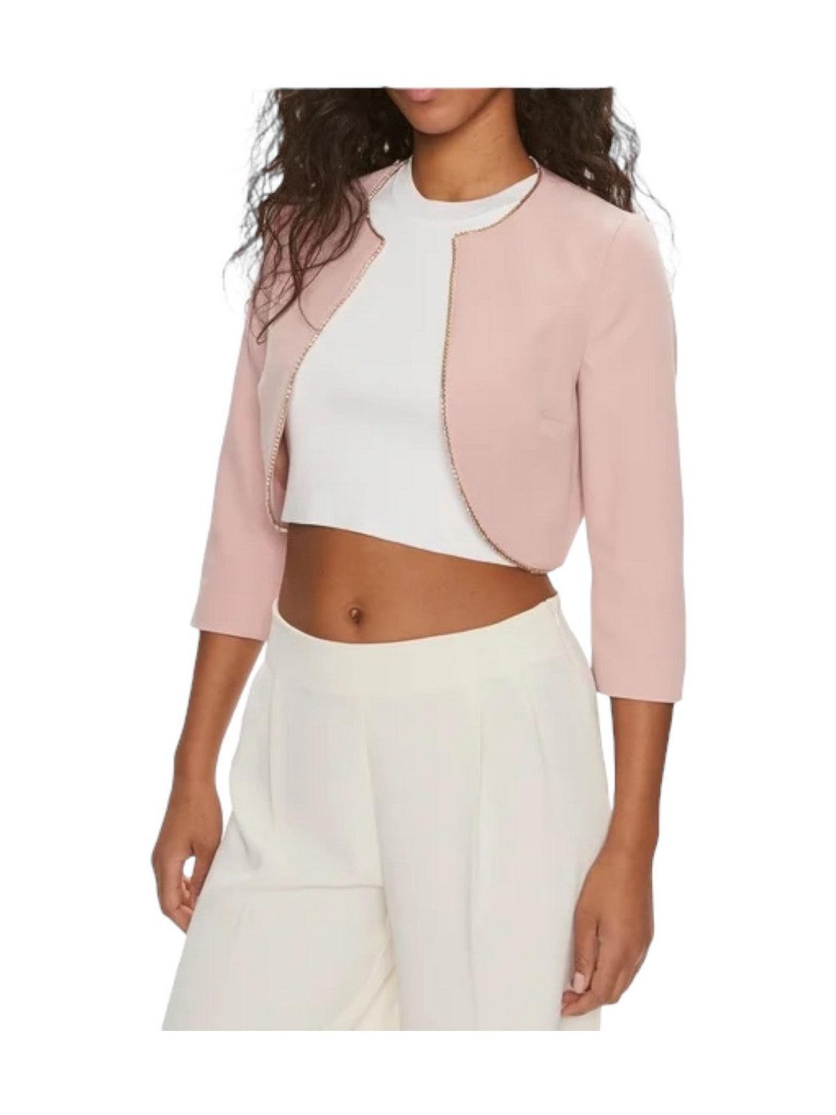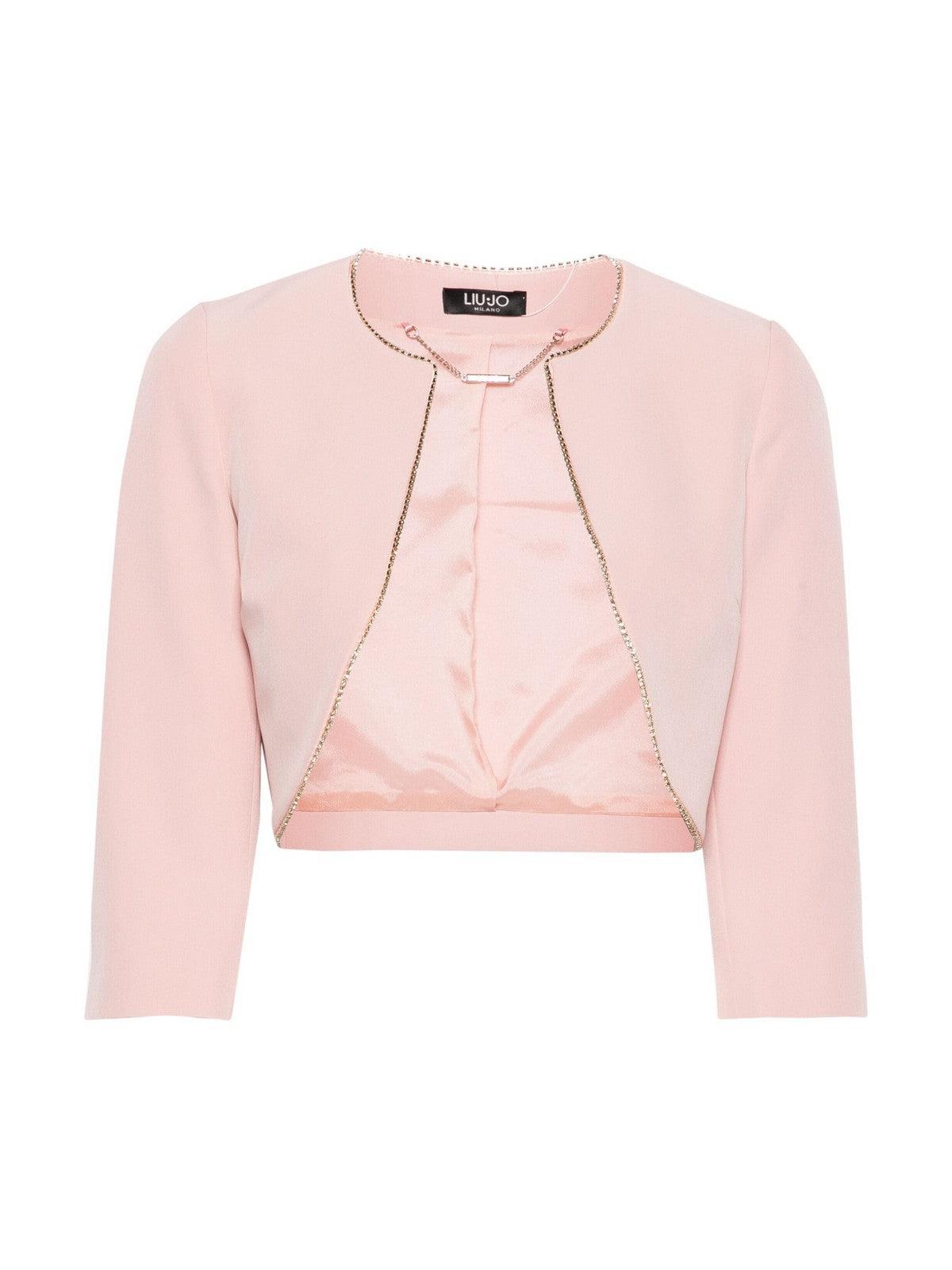 Giacca cropped LIU JO tinta unita con strass applicati su orli. Collo a giro e maniche 3/4. Senza chiusura.