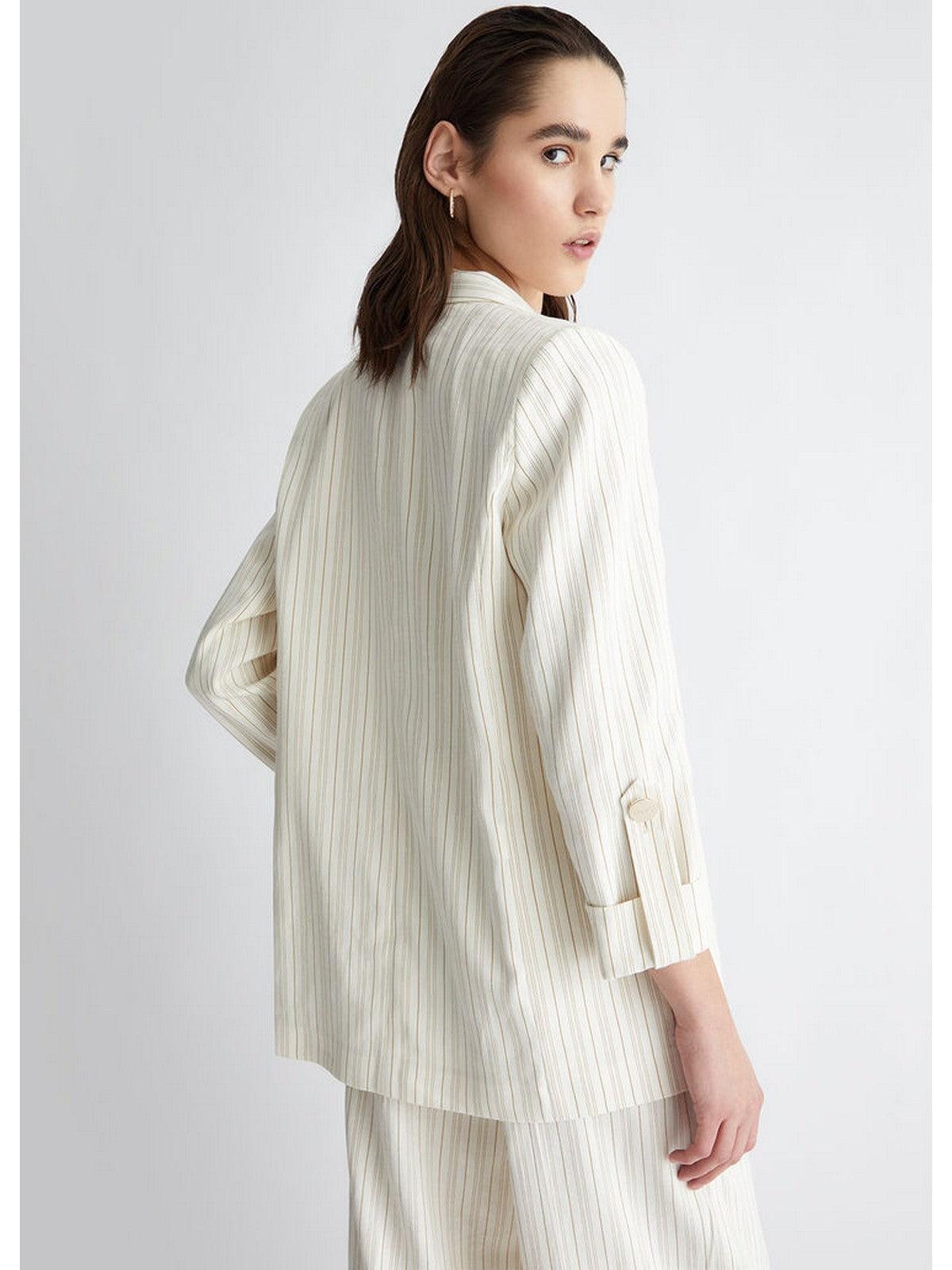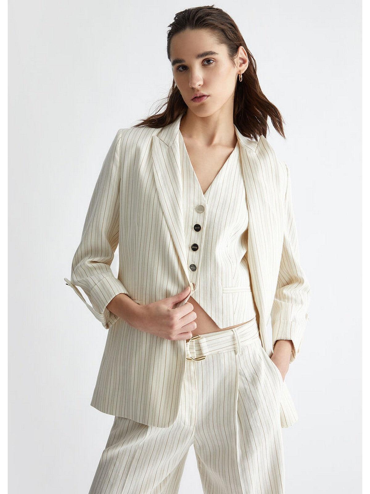 Blazer LIU JO realizzato in misto lino e cotone, motivo gessato.