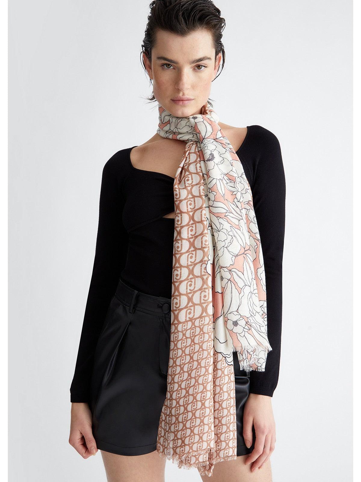 Stola LIU JO in tessuto BLOSSOM con fibre di bamboo. Stampa floreale e logo monogram all over.