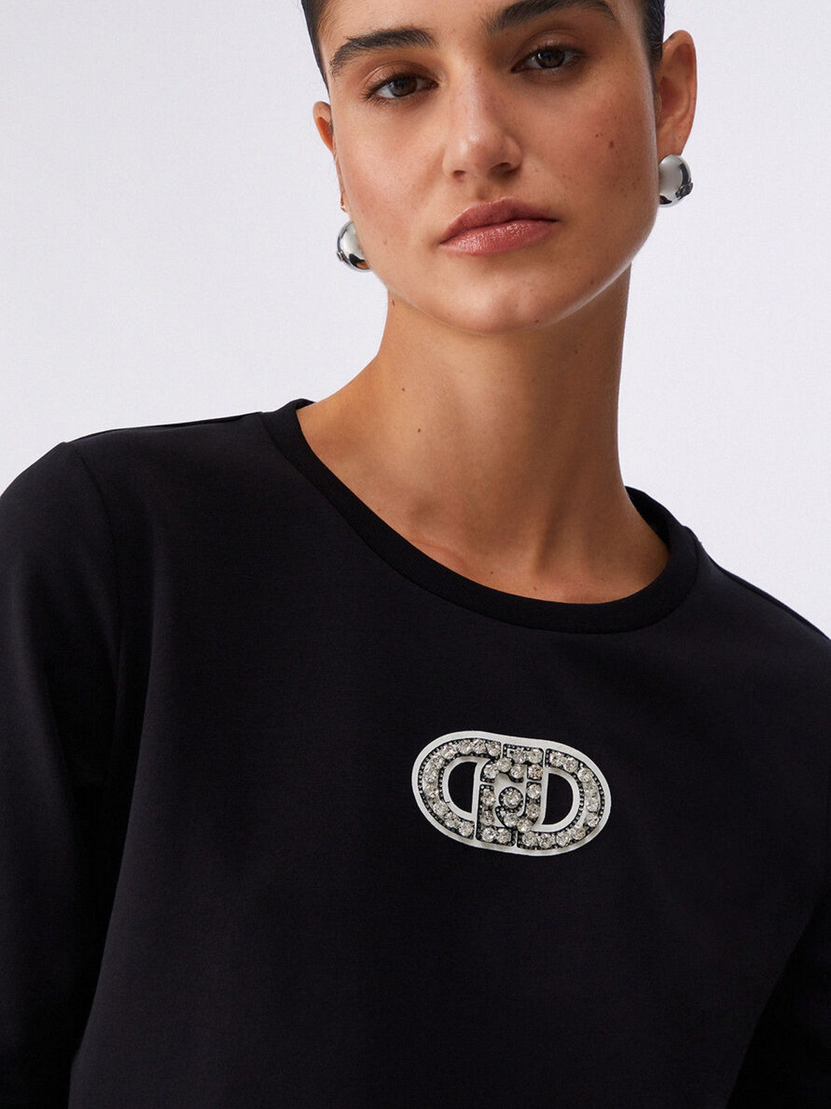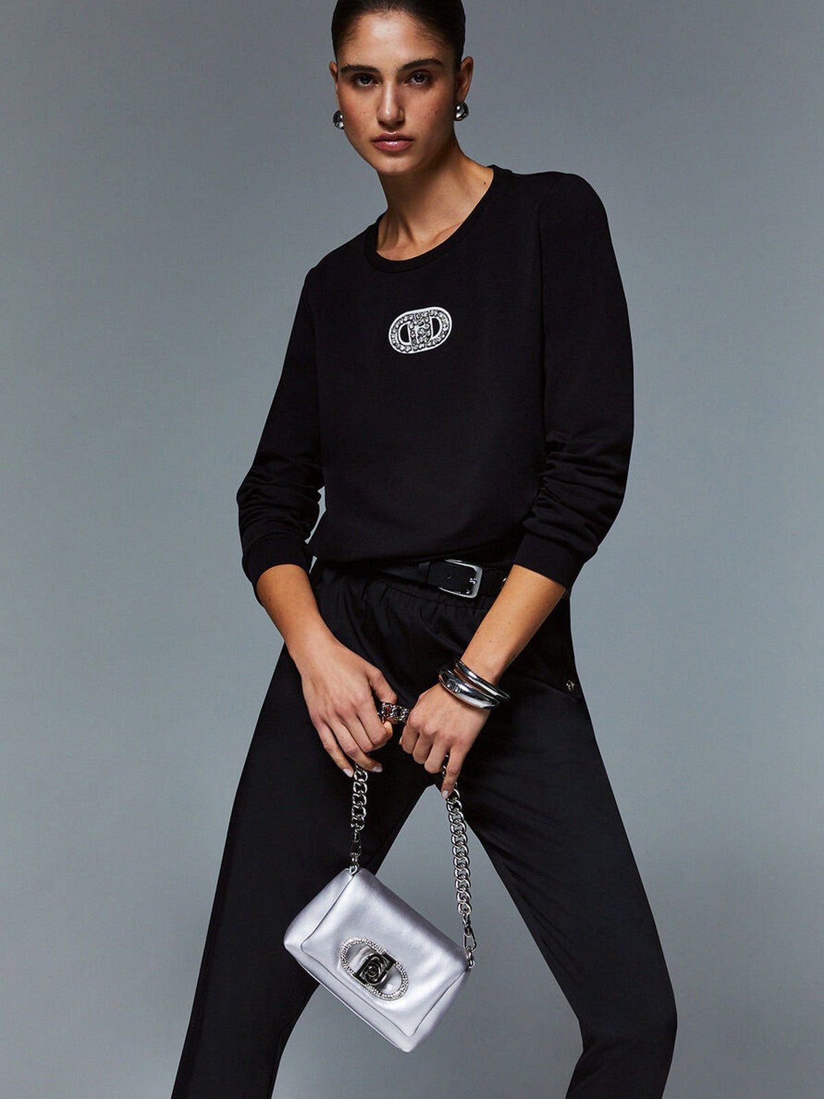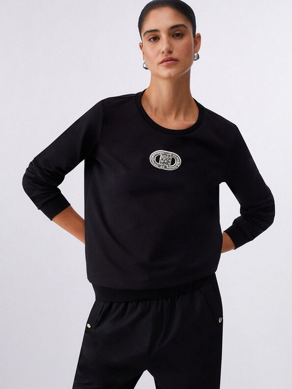 LIU JO SPORT Felpa Donna TA6073FS090 P9298 Nero/logo strass
