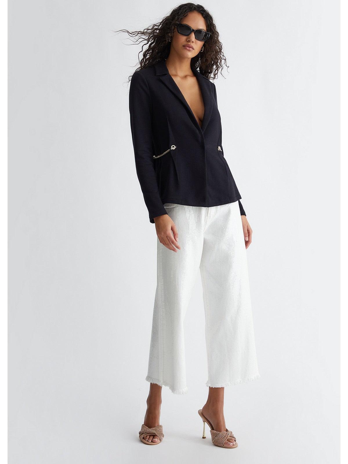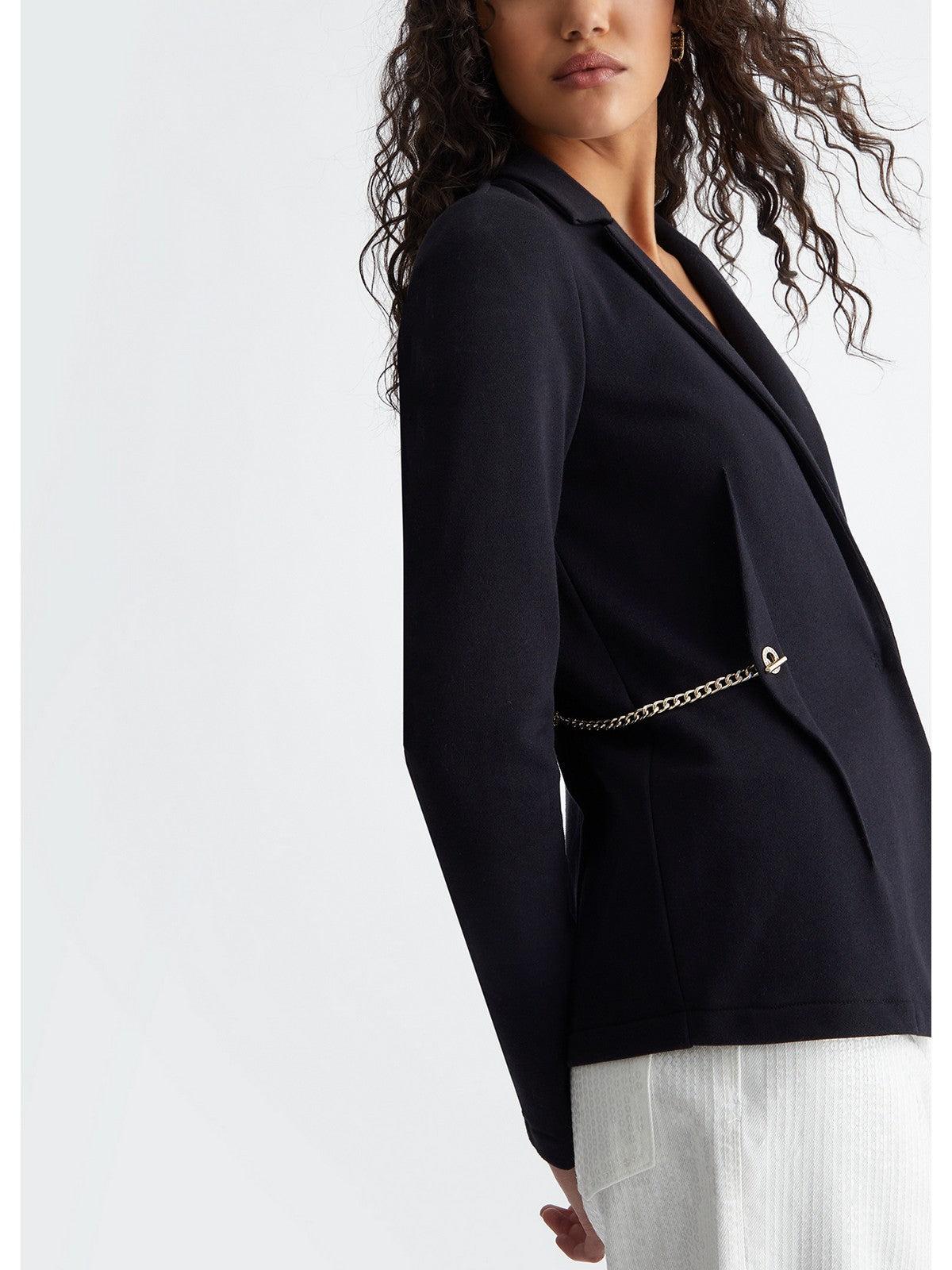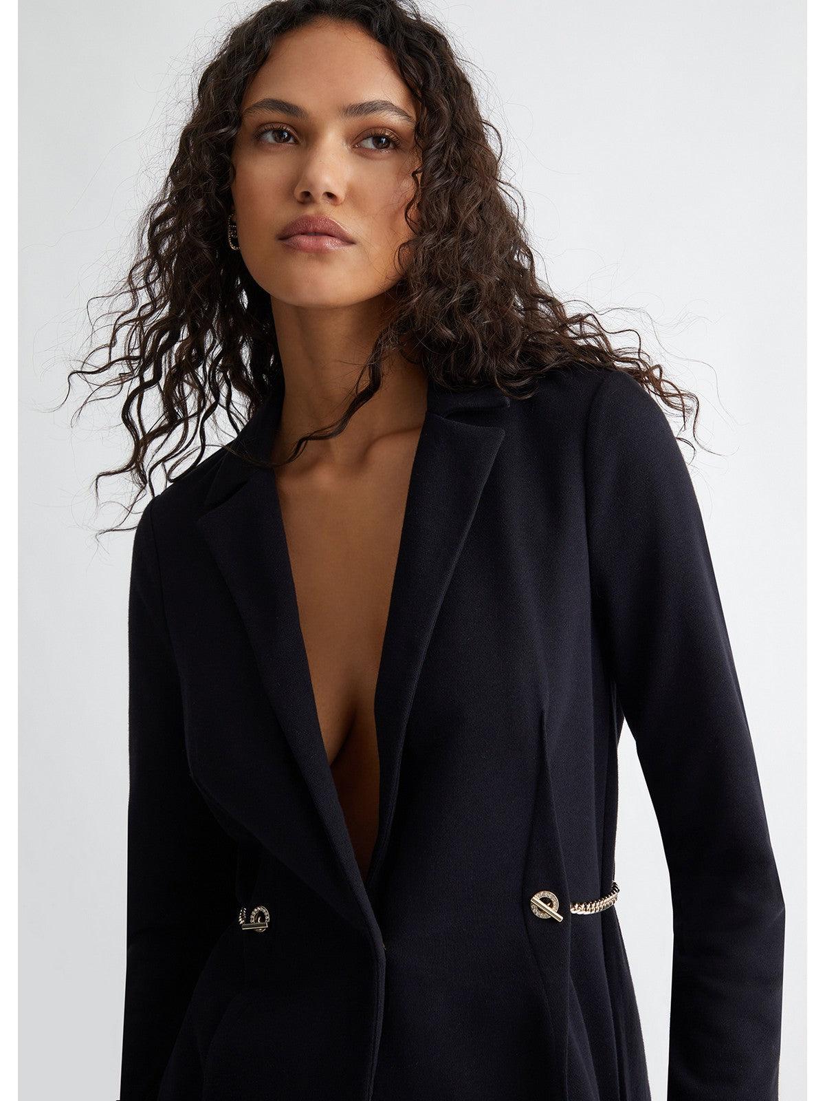 Blazer LIU JO in misto cotone. Modello in felpa. Revers classico e maniche lunghe. Accessorio a catena in metallo sui lati. Chiusura monopetto con bottone nascosto.