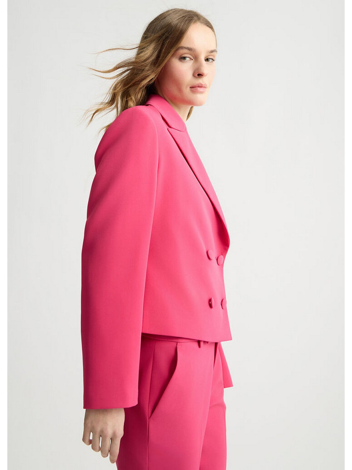 ? Chiusura doppiopetto con bottoni rivestiti