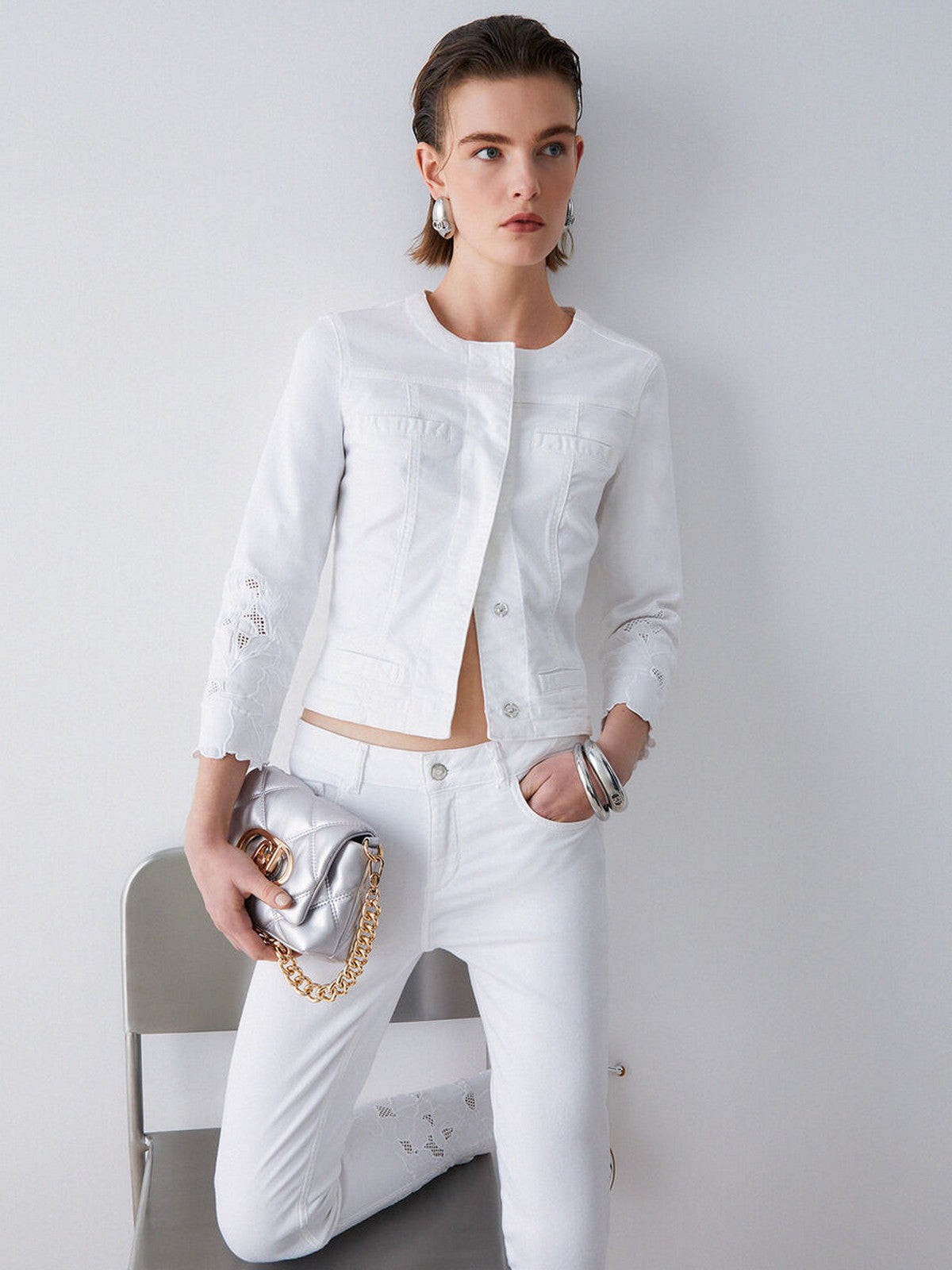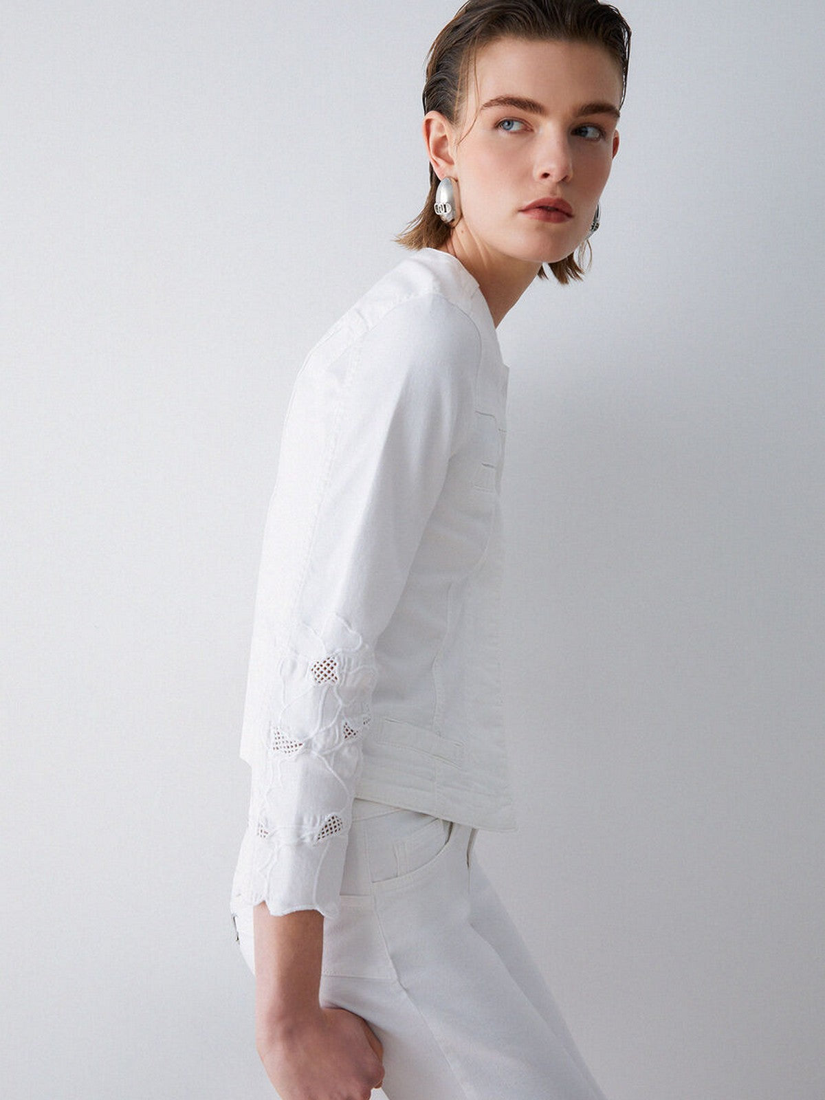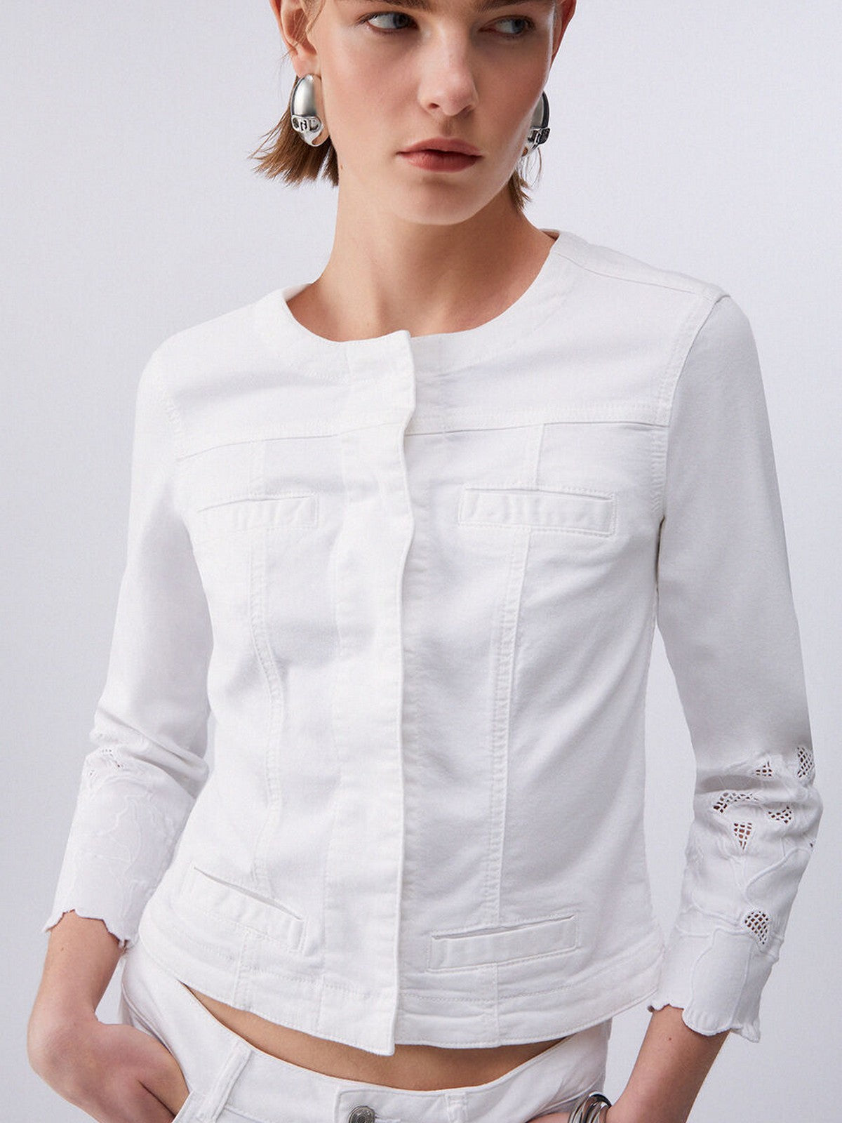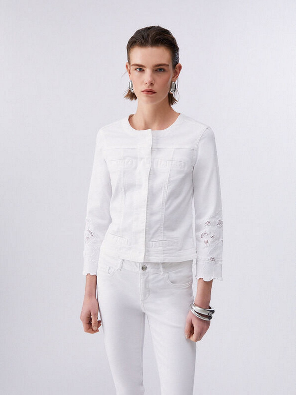 Giubbino LIU JO in gabardine di cotone con ricamo sangallo