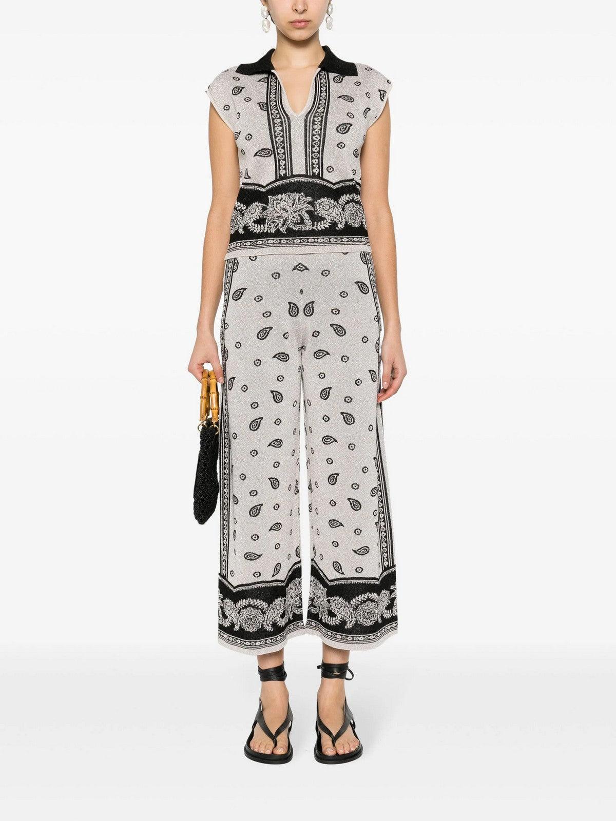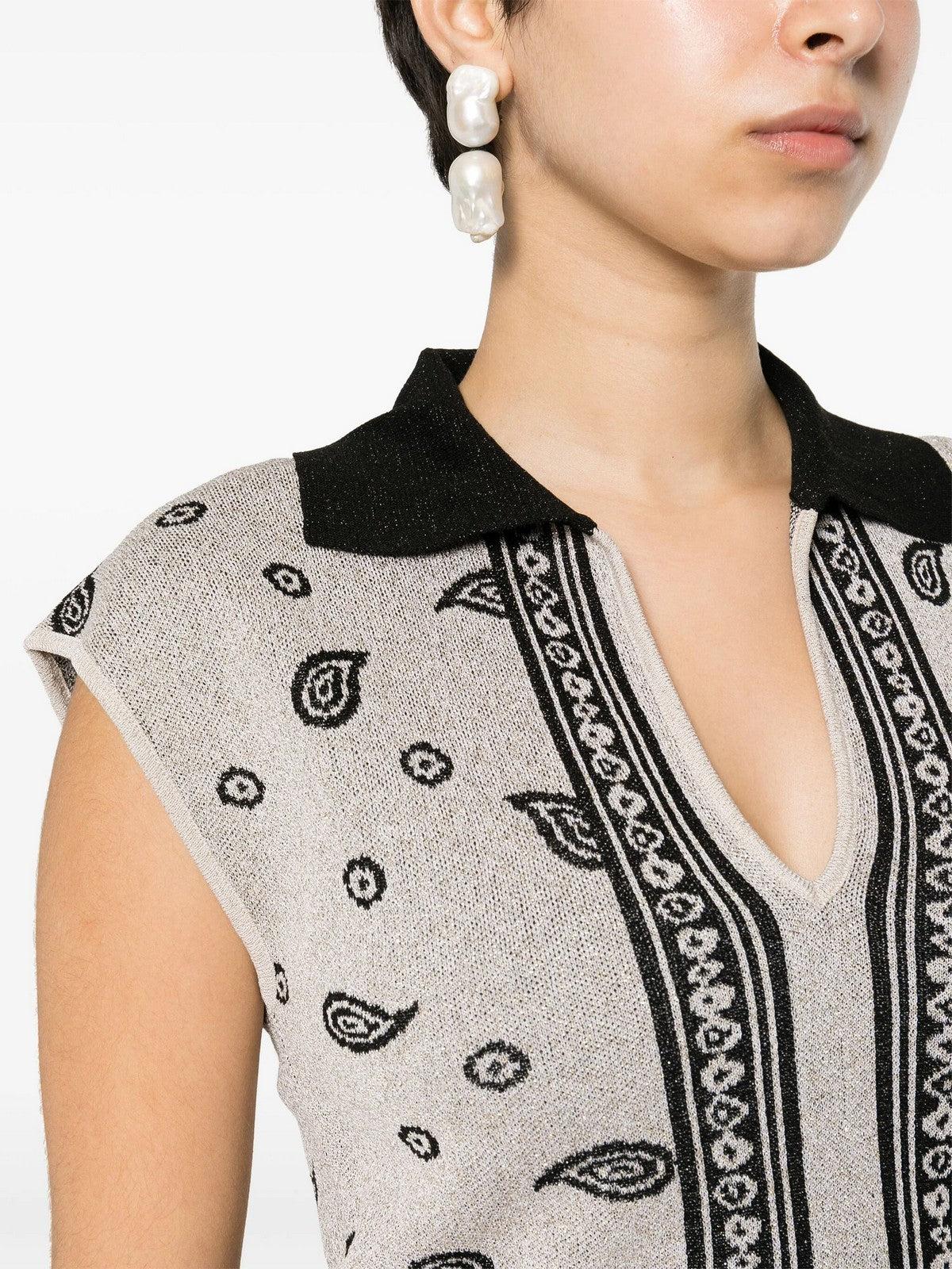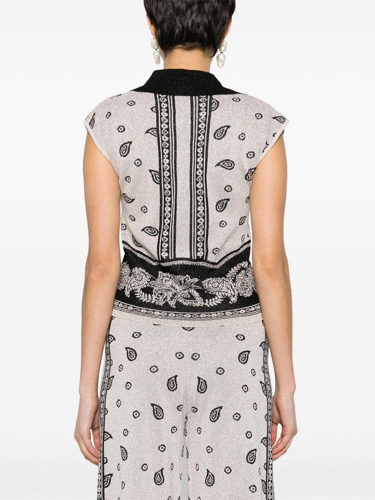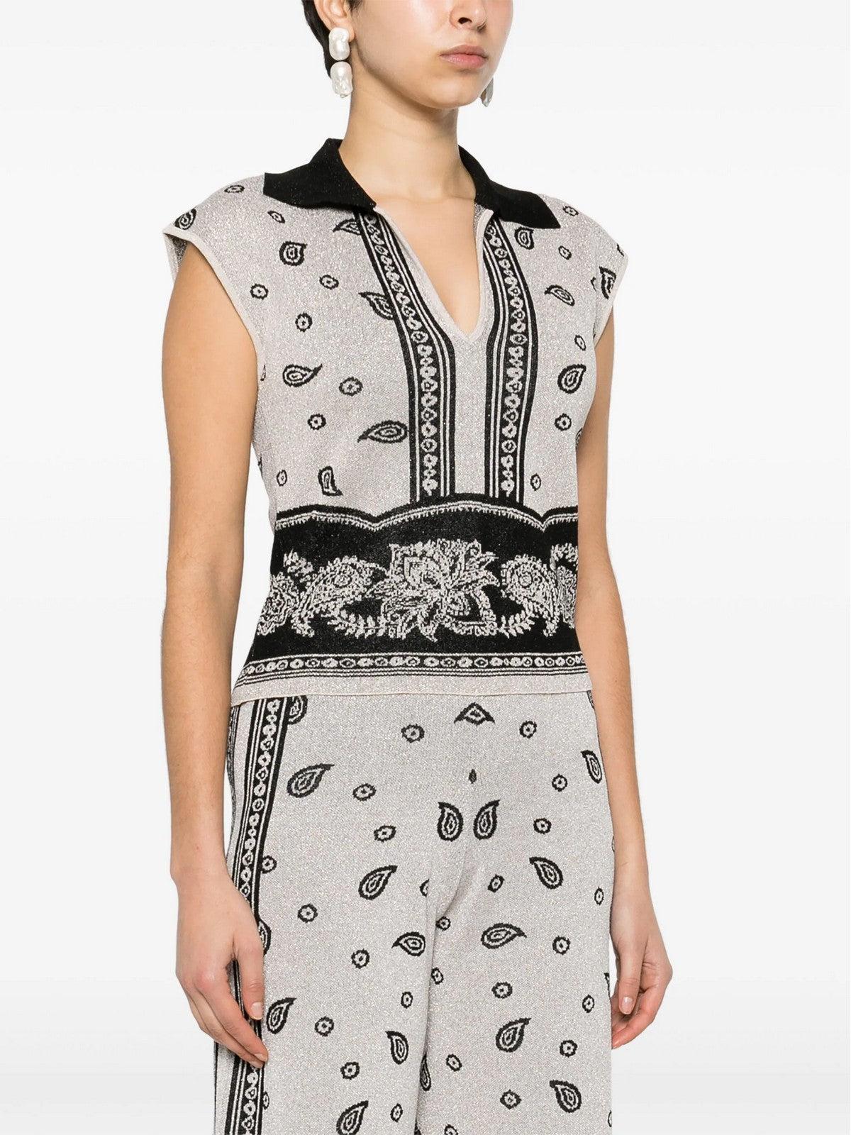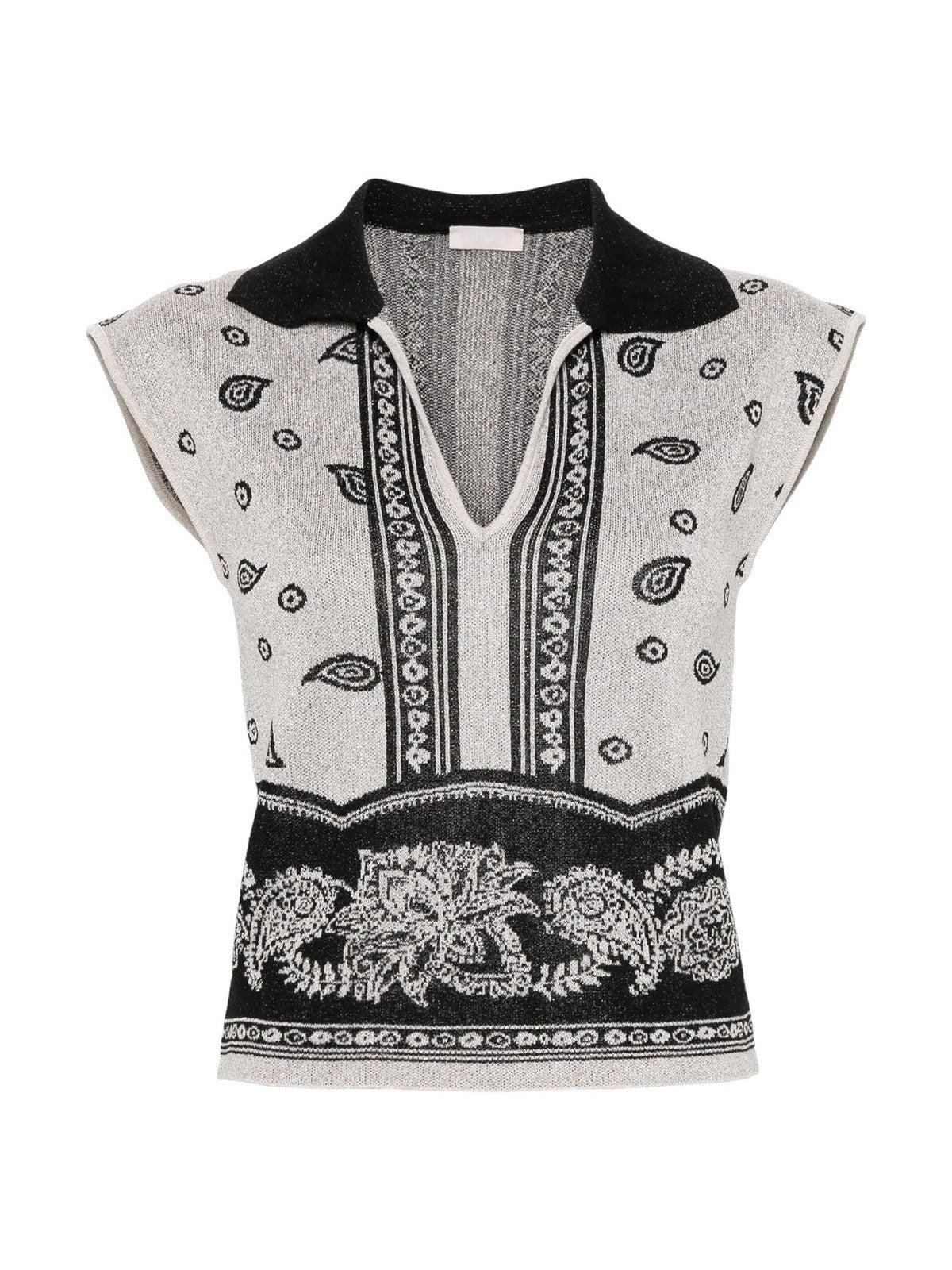 Maglia LIU JO in misto viscosa, tessuto jacquard. Motivo bandana. Collo a V con colletto. Smanicato.