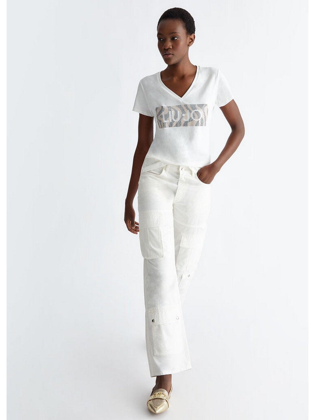 T-shirt LIU JO in jersey di cotone di cotone. Logo con strass sul davanti. Scollo a V e maniche corte.