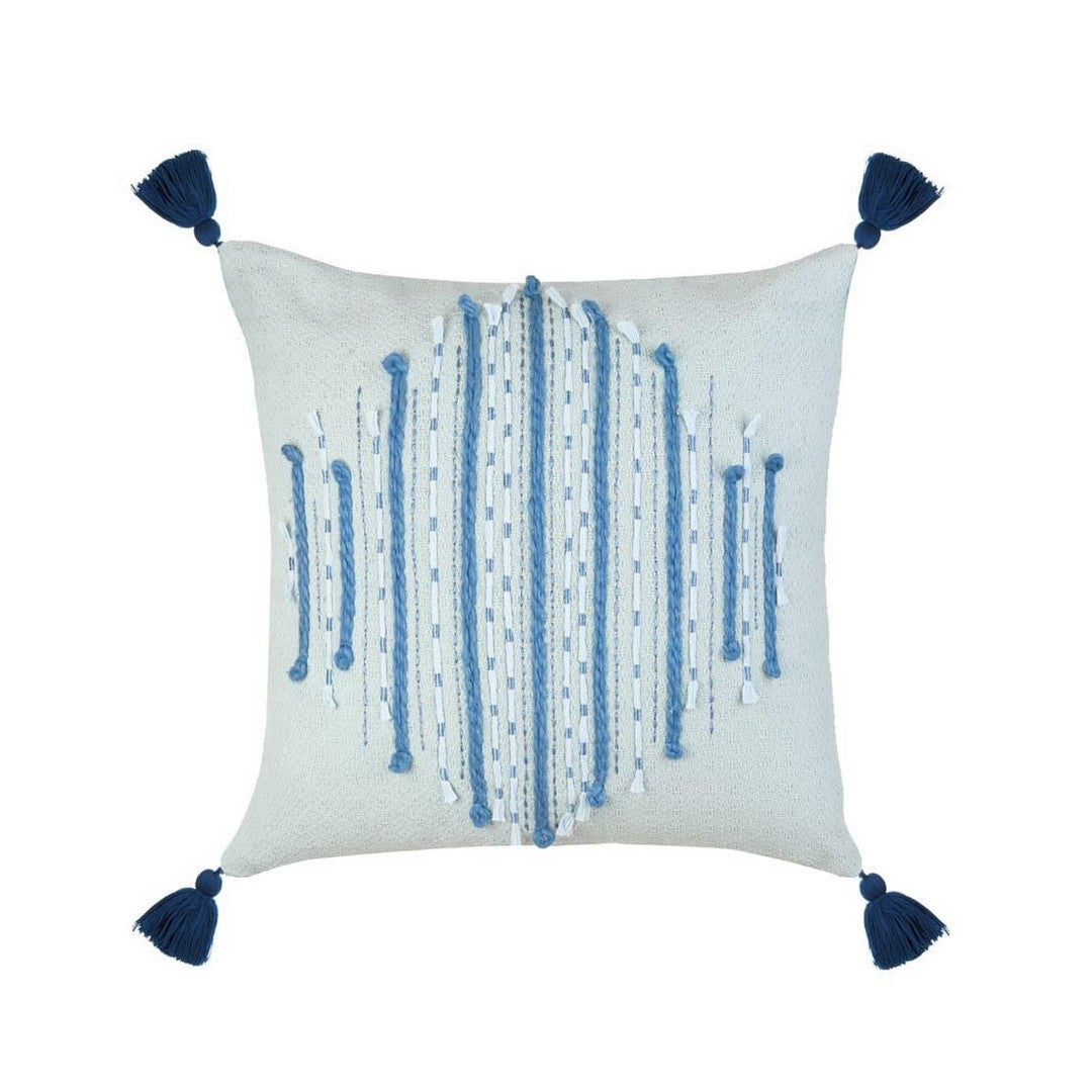 Cuscino arredo in cotone con applicazioni e ricami. Un decoro geometrico con dettagli materici per vestire il living di stile. Da abbinare al cuscino quadrato coordinato d'ispirazione Orizzonti per un seduta di design. Sfoderabile.