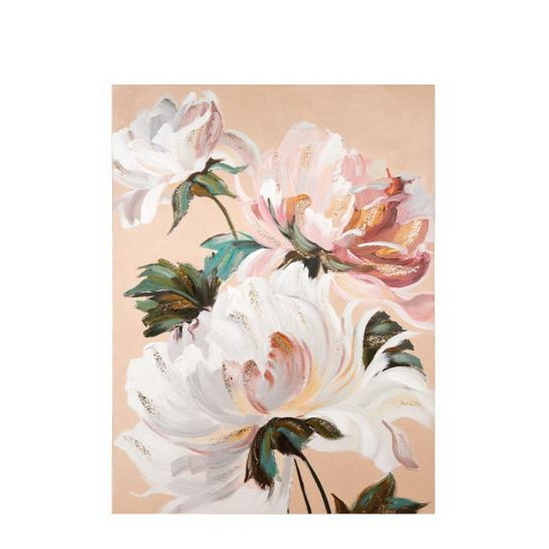 Quadro con cornice realizzato con la tecnica della pittura acrilica su tela e con applicazione di foglia d'oro. Fantasia floreale con preziosi dettagli che veste di eleganza bohémien l'ambiente in cui si trova. Tutti i quadri dipinti con la tecnica acrilico su tela sono fatti a mano.
