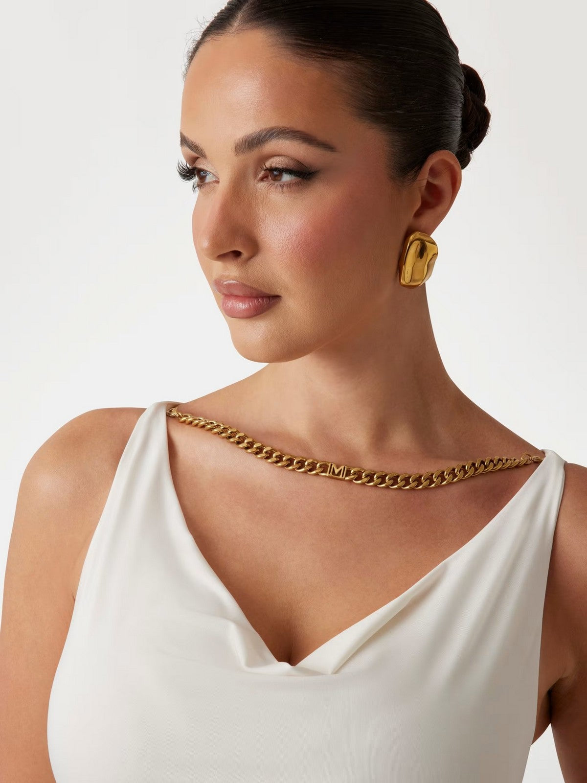 ? Catena con logo in corrispondenza dello scollo anteriore.